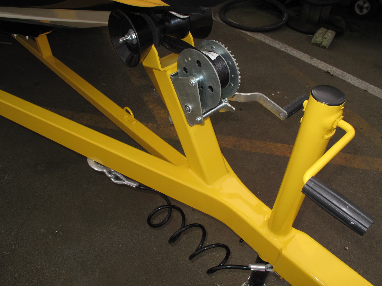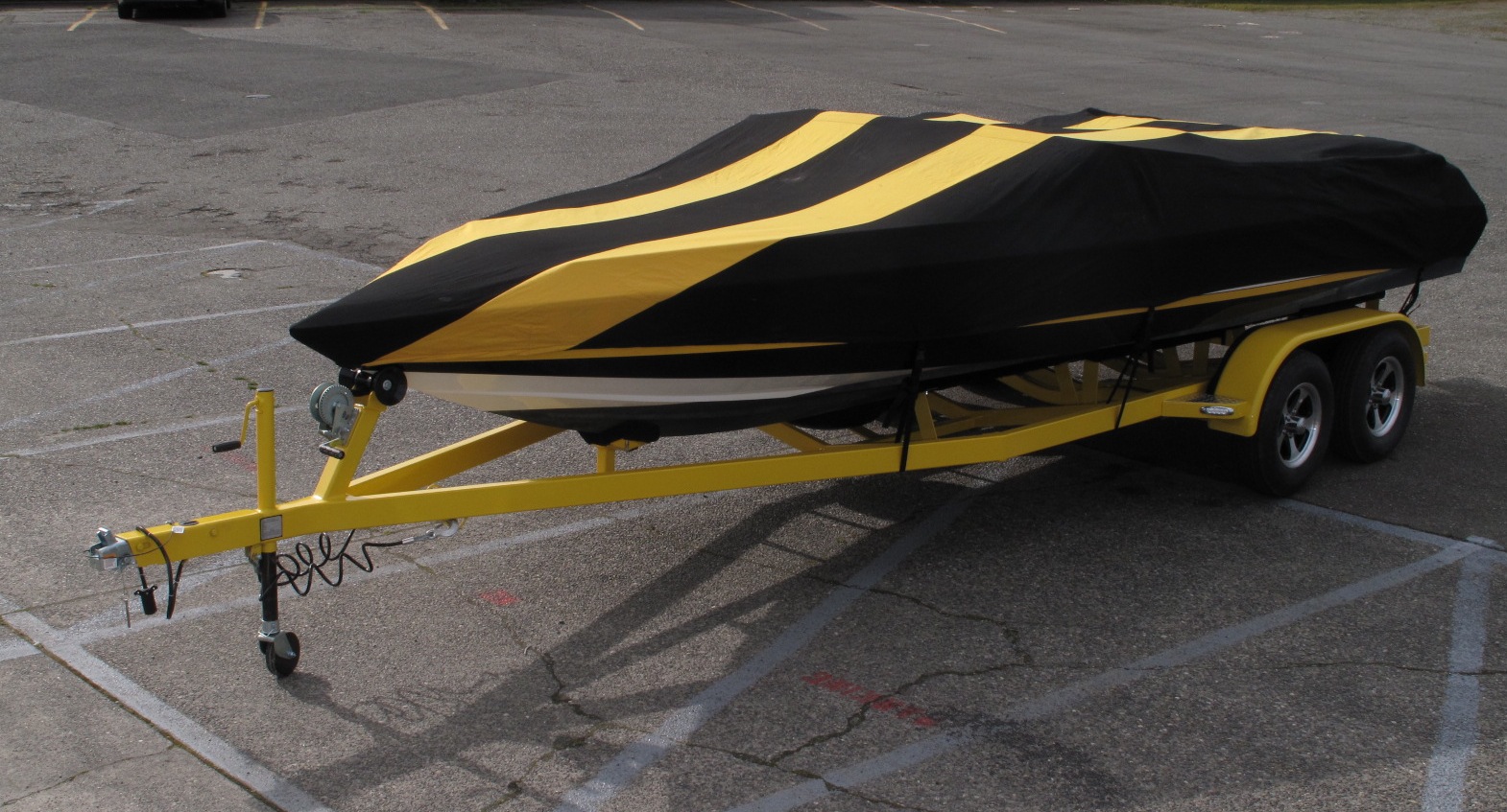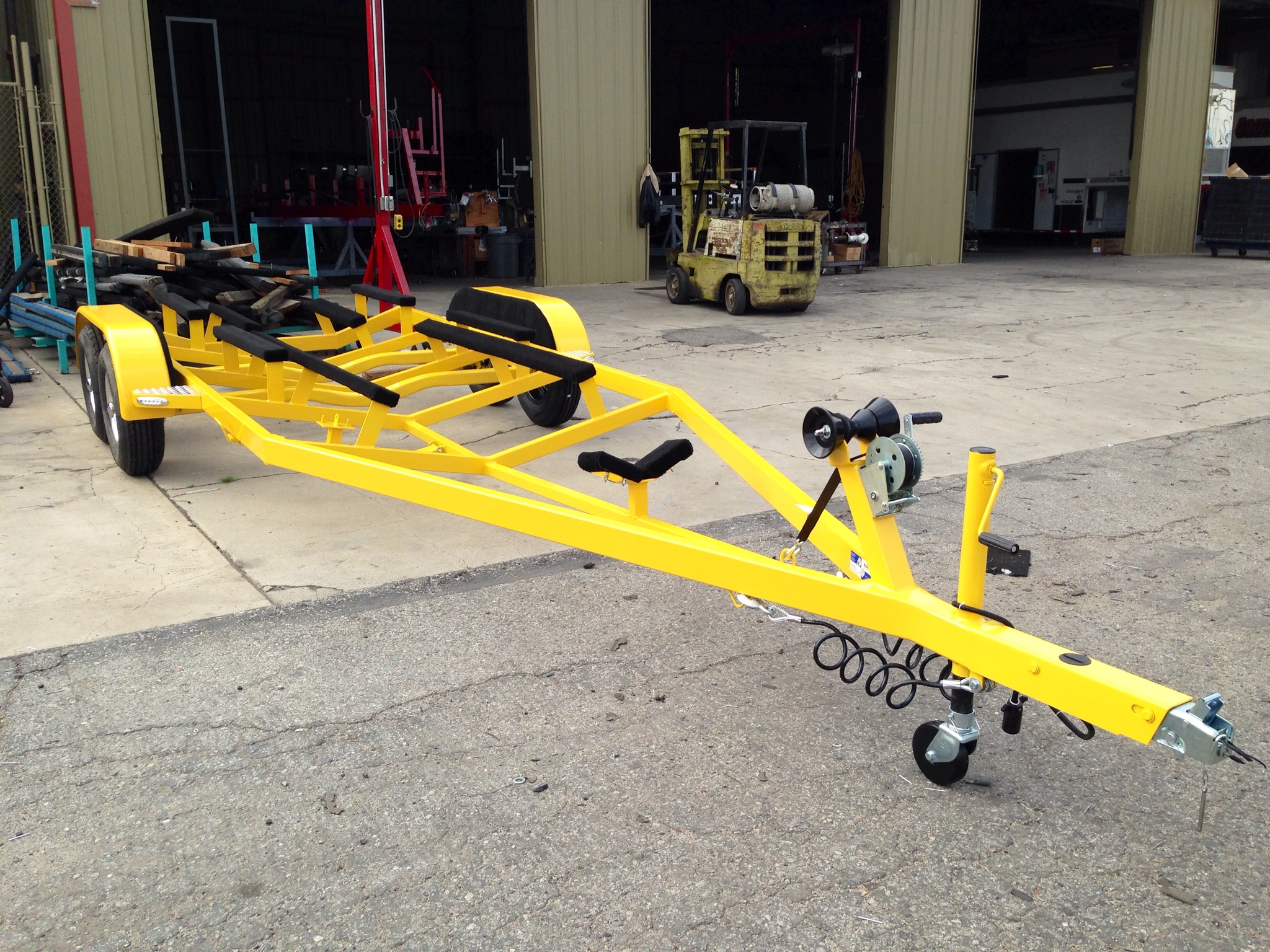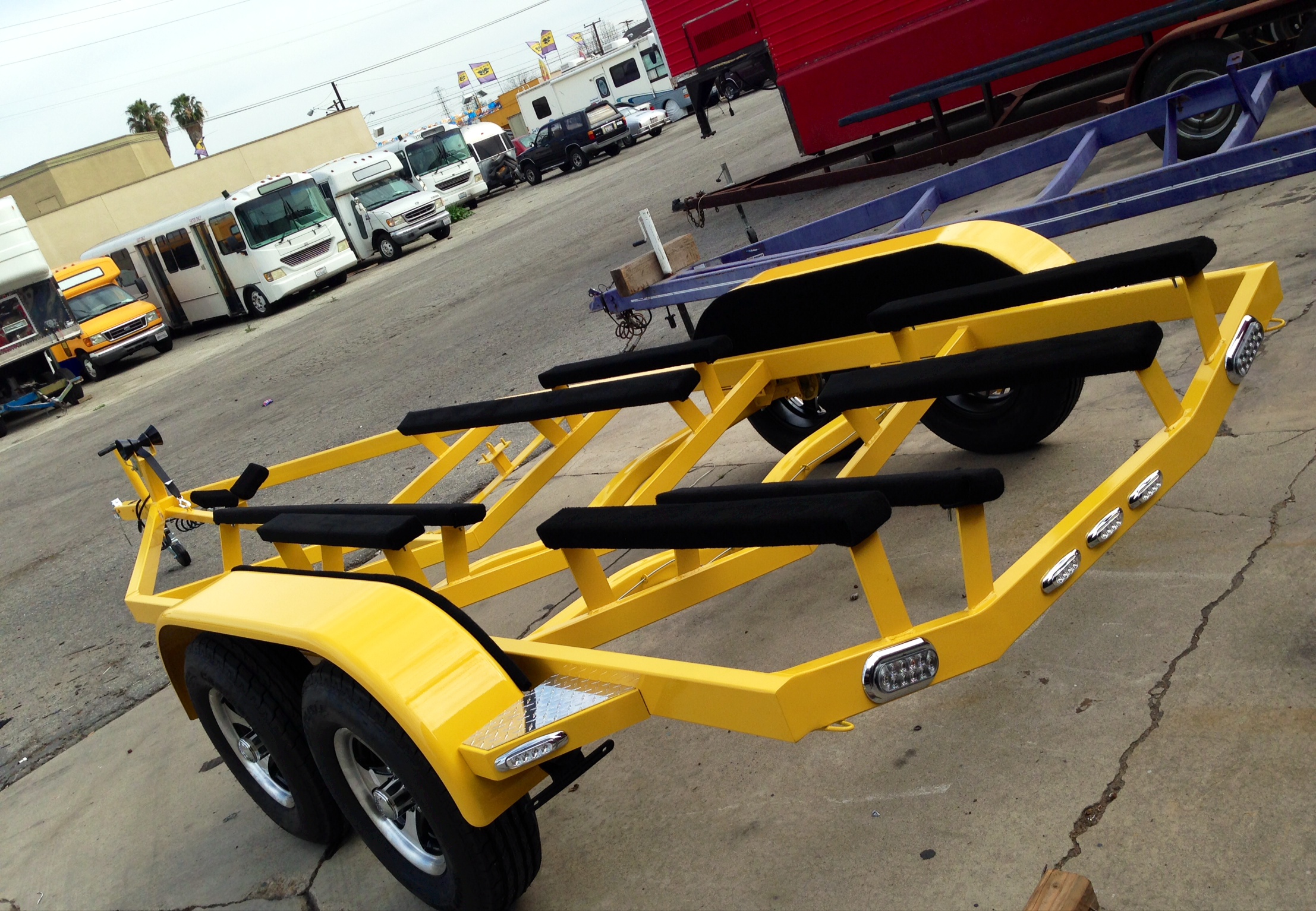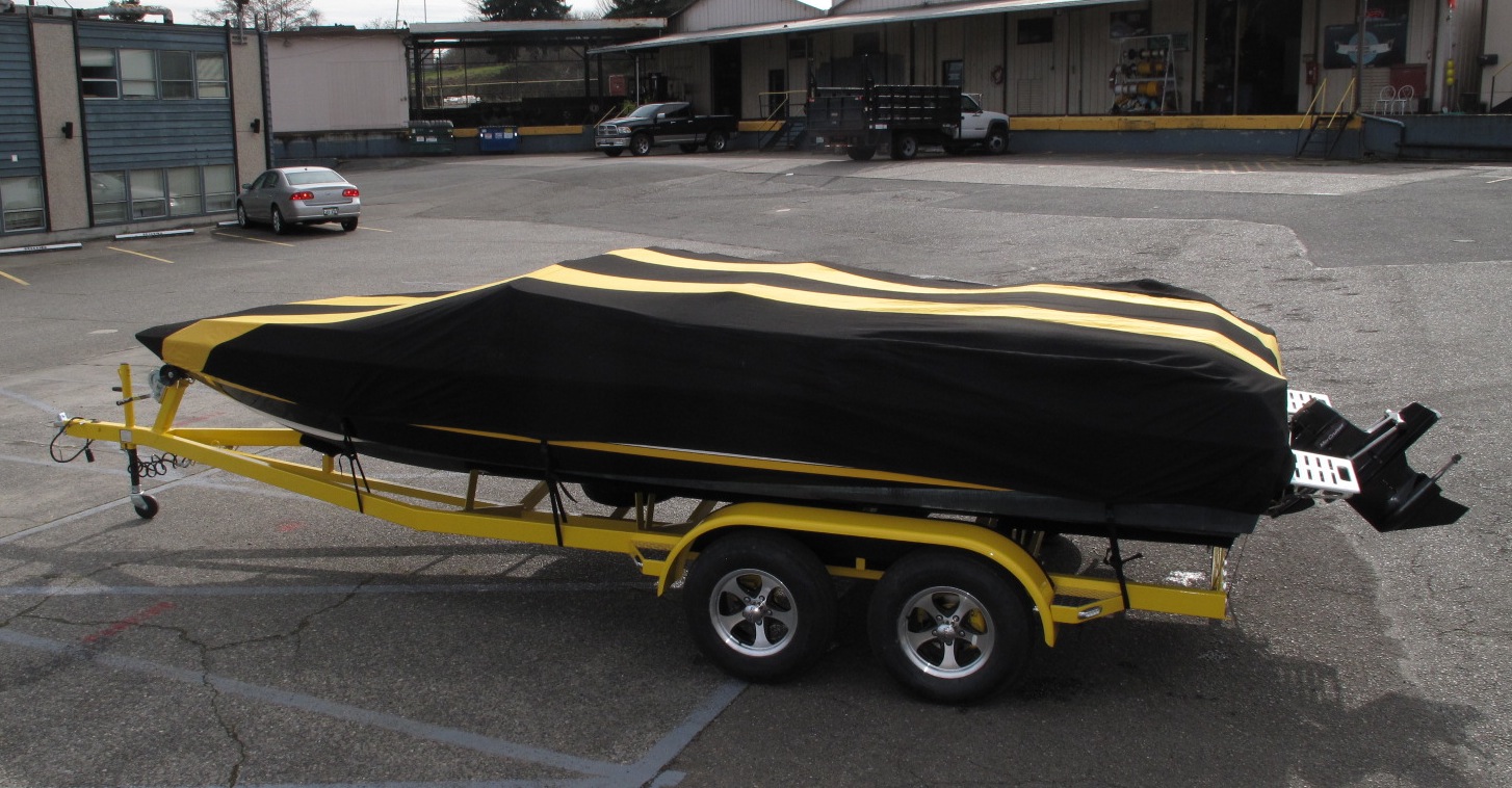 She’s also got a brand new custom-painted trailer from Competitive in Los Angeles, built to fit this specific boat. We had it shipped up here from Los Angeles on a flatbed = no highway miles. Trailer has been in the freshwater one time to load the boat to it. Dual axle, surge brakes, LED lights, seven blade connector, sharp looking alloy wheels with a locking spare, and not a single scratch on it. Well, we did put five miles on the tires bringing it around to our storage area.
