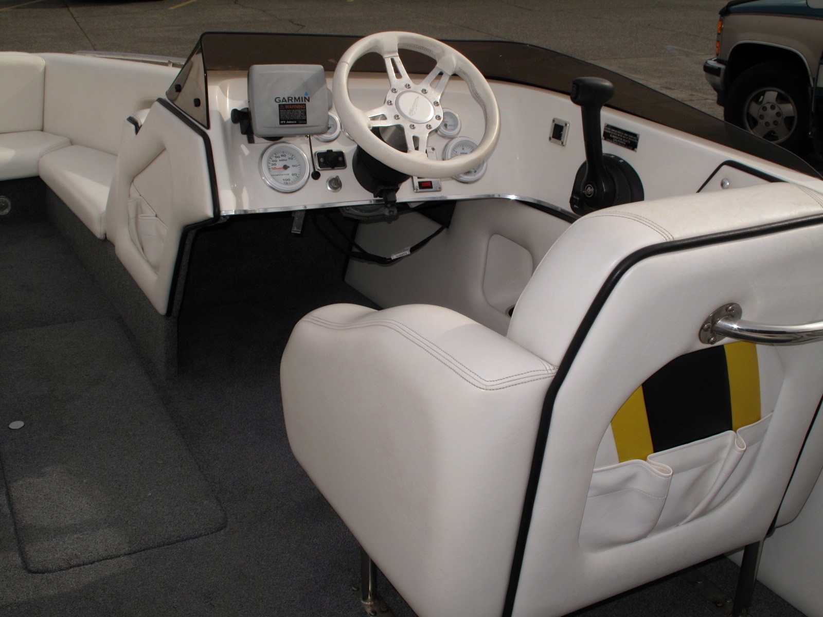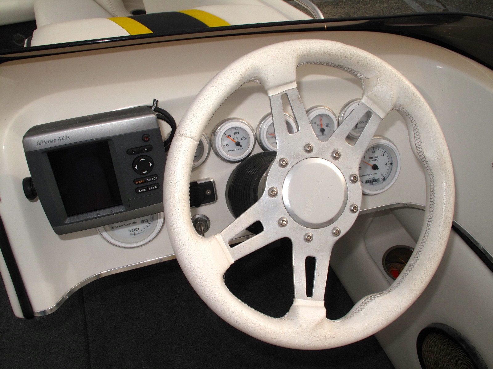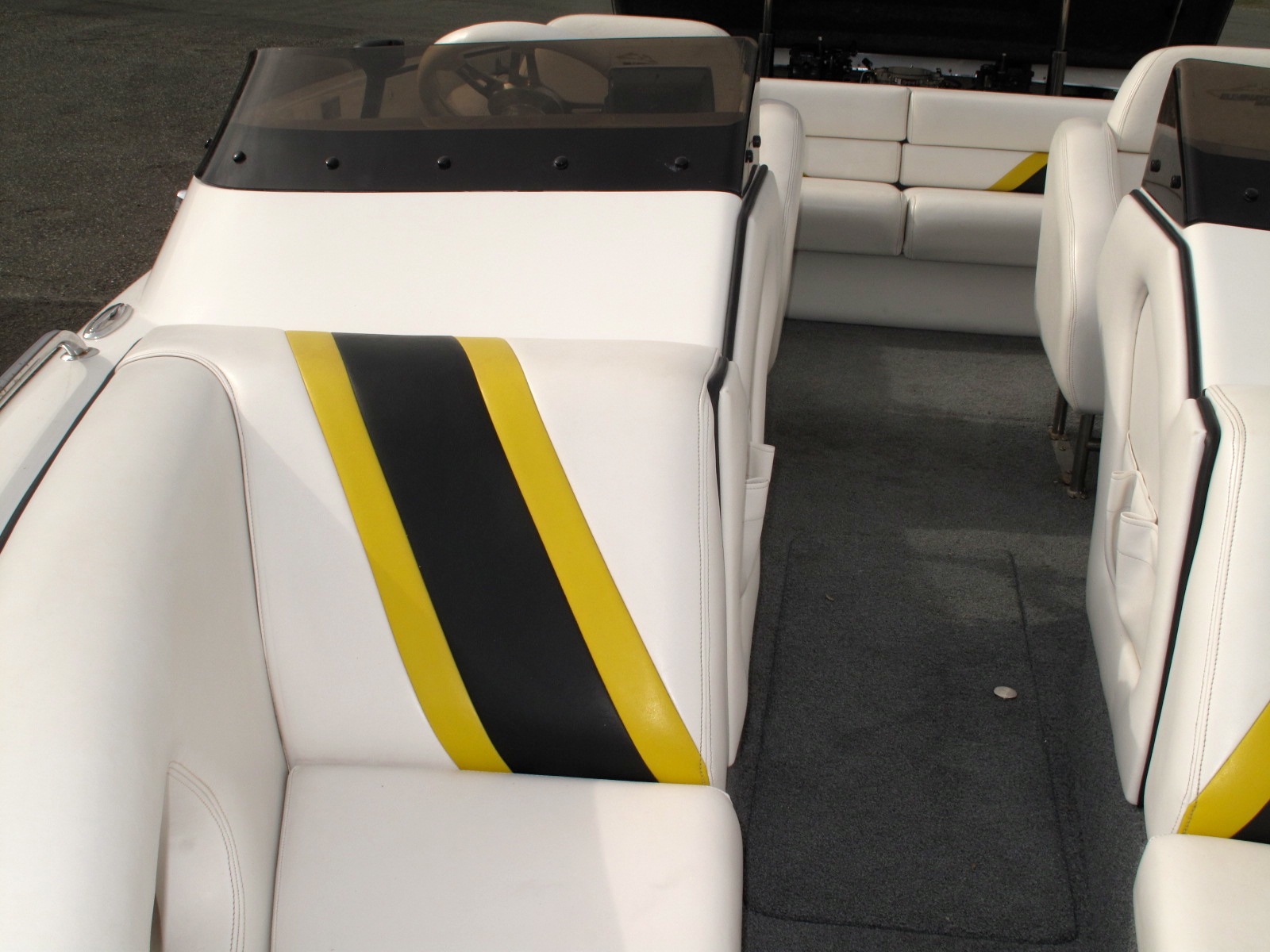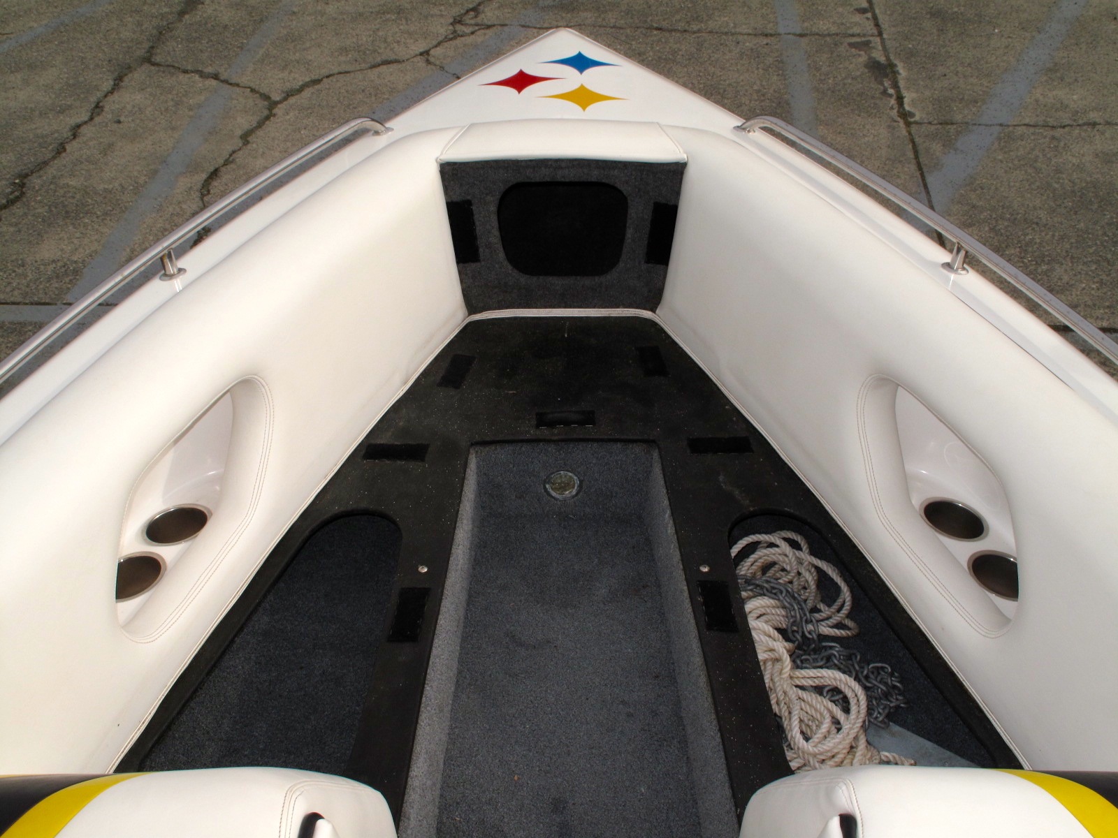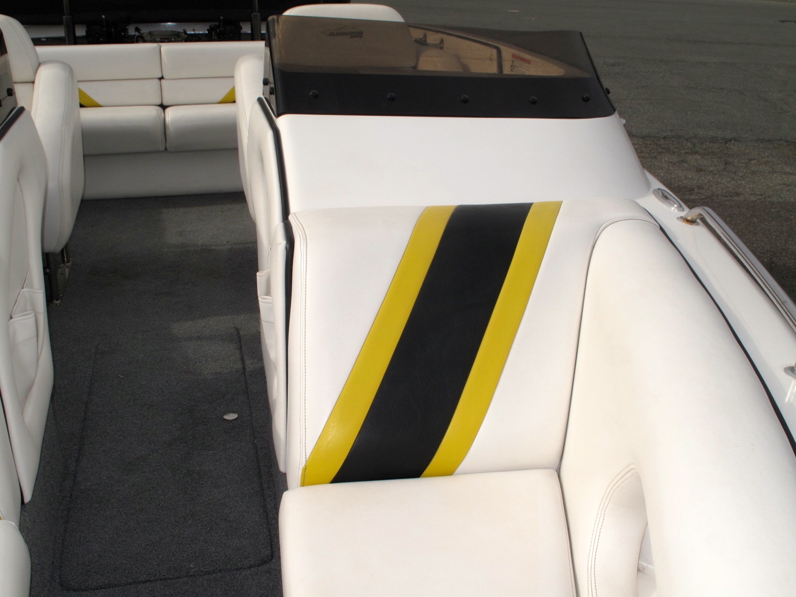 This Eagle 210 XP is in ‘like new’ condition, very clean and shows beautifully. She’s been fully detailed inside and out. Beautiful white upholstery with black and gold inserts and trim, matching paint accents and insignia, and the hull finish sparkles.
