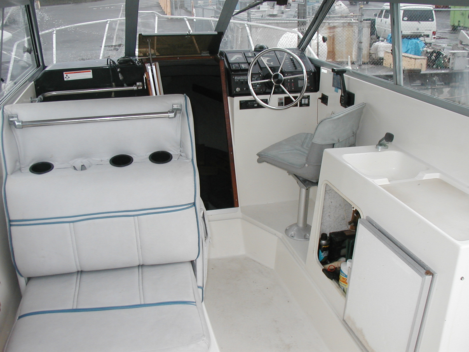 A very nice Bayliner Trophy 24′ hardtop with cuddy cabin and large aft deck. There’s no ‘Alaskan Bulkhead’ on this 1987 model. Twin berths forward and a full-sized quarter berth on the port side. OMC 5.0 engine.