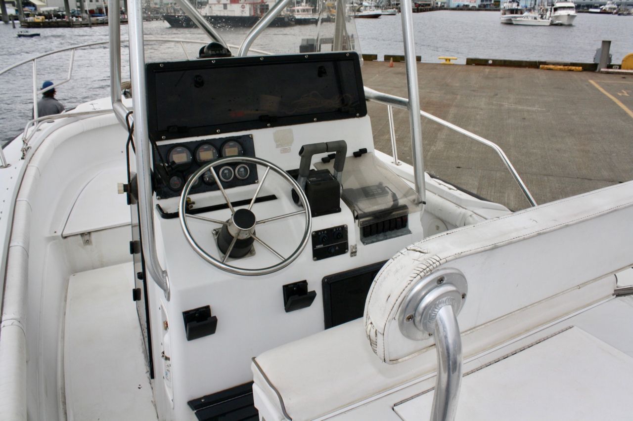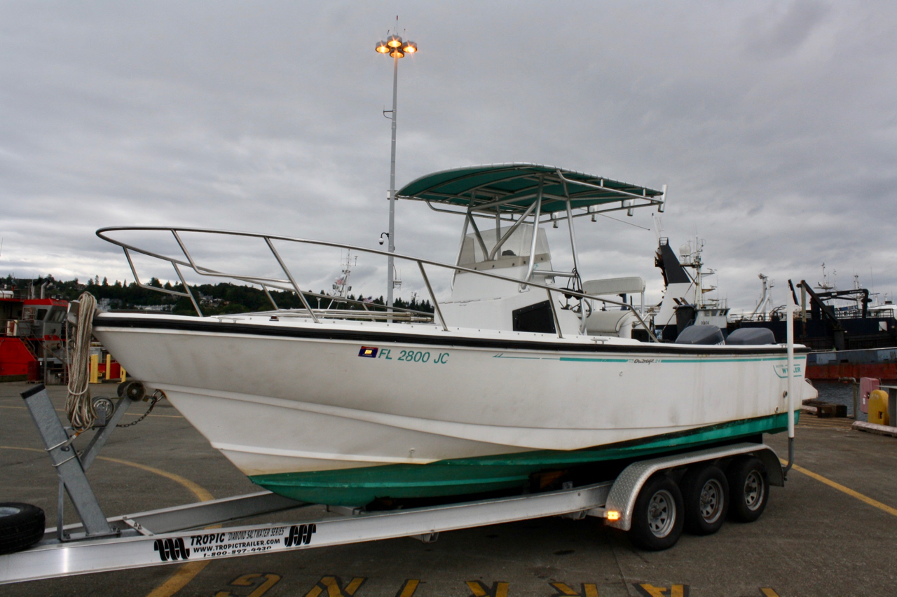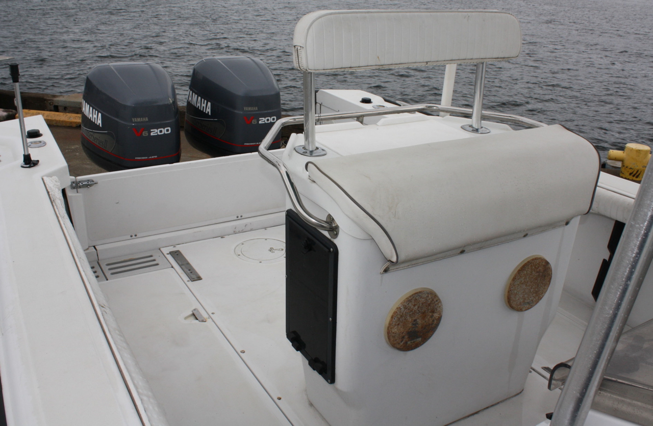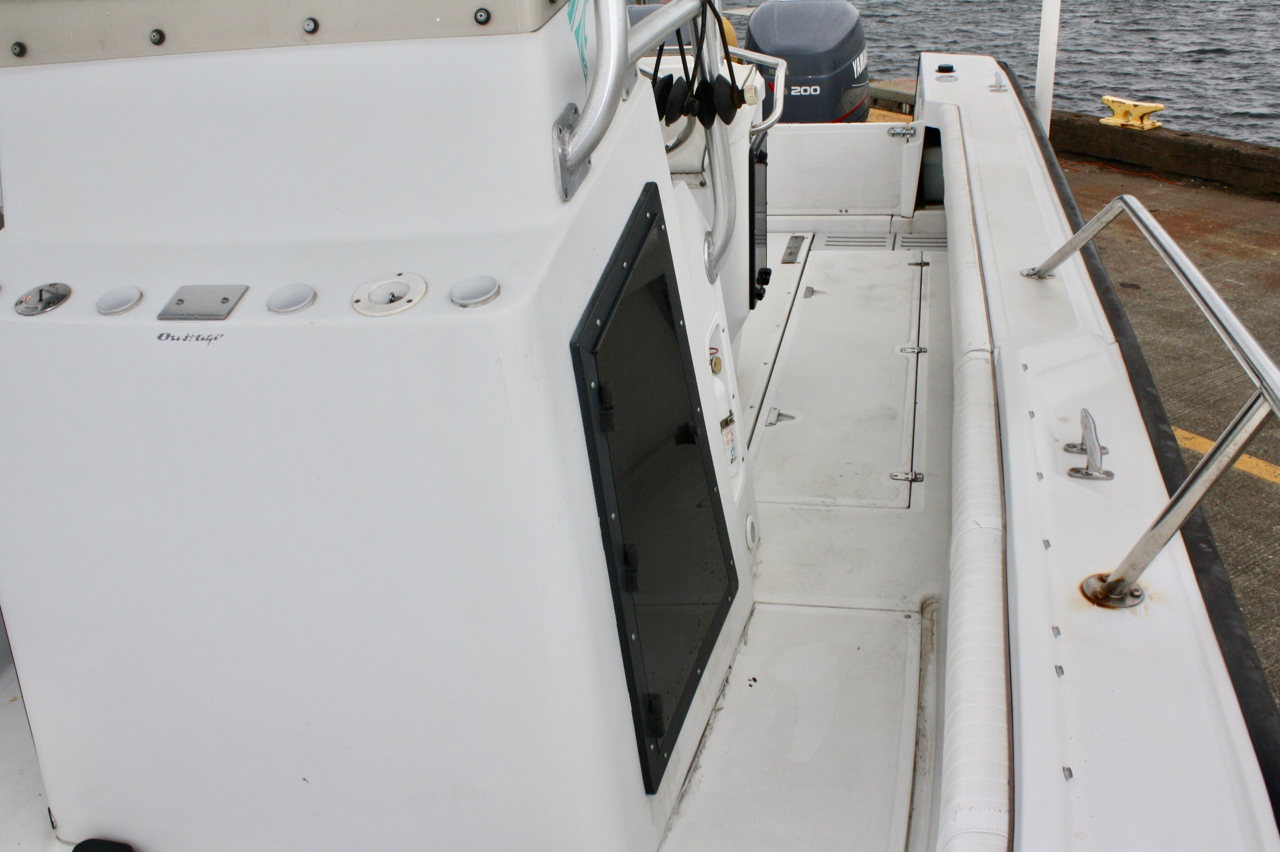 A 1996 Outrage 24’ center console model with the famed “Unibond” hull construction by Boston Whaler.  Hull construction is two fiberglass hulls with hardening foam injected between for maximum strength and flotation.  Whaler boats are known to be strong, safe in rough water and advertised as unsinkable.