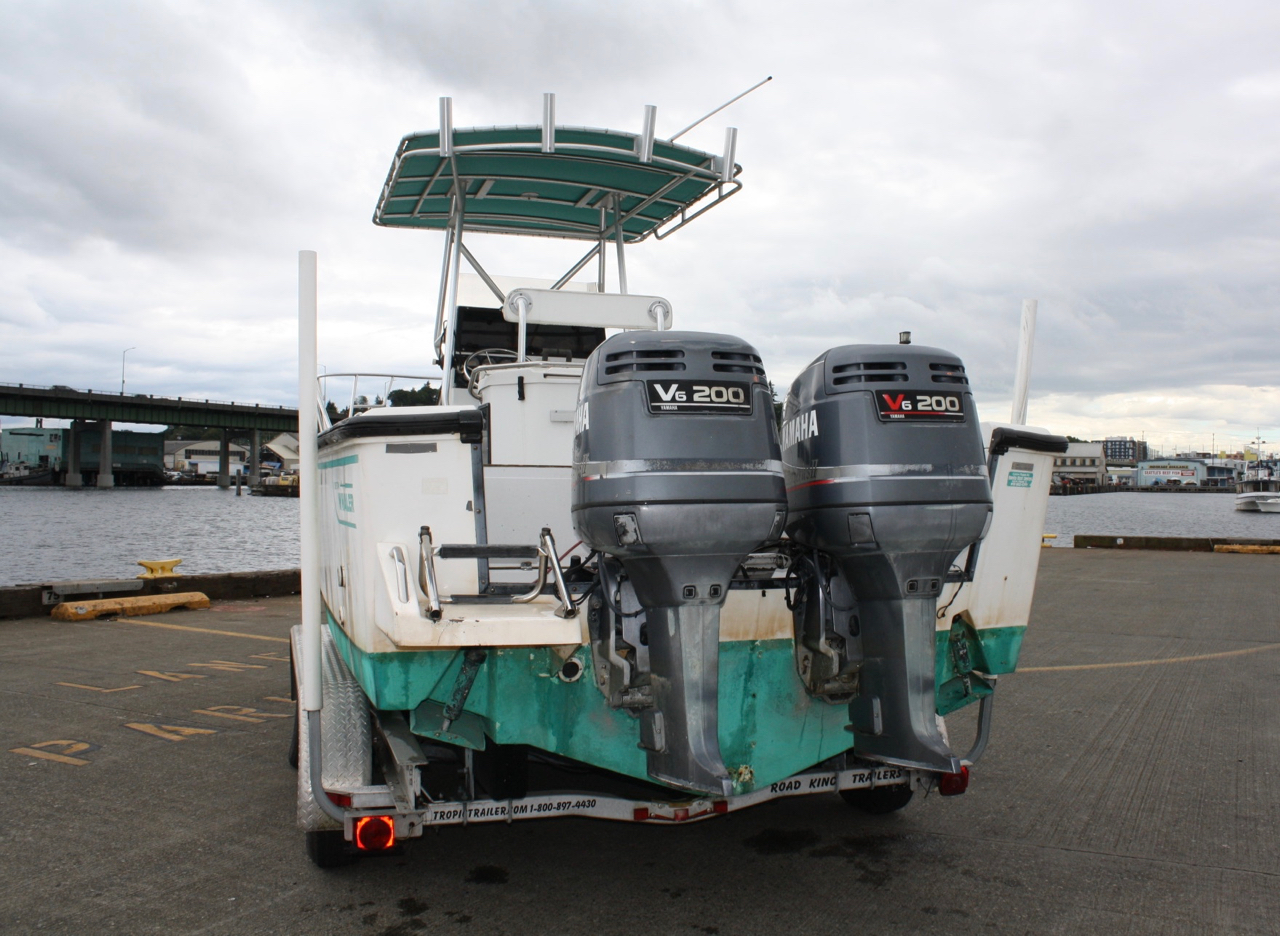 SO — we’re pricing the boat and trailer at a fabulous discount (check Yachtworld listings for some current comps on ‘restored’ Whaler Outrage 24’).  We’re looking for the right person who wants to take on the project themselves, and perhaps already has access to a pair of fine outboards to mount.  This boat also came from the factory with a single 250 hp option.  That set-up along with a trolling motor might actually be economical and best for the kind of fishing we do in the Northwest … plus less expensive to get her out on the water this year.