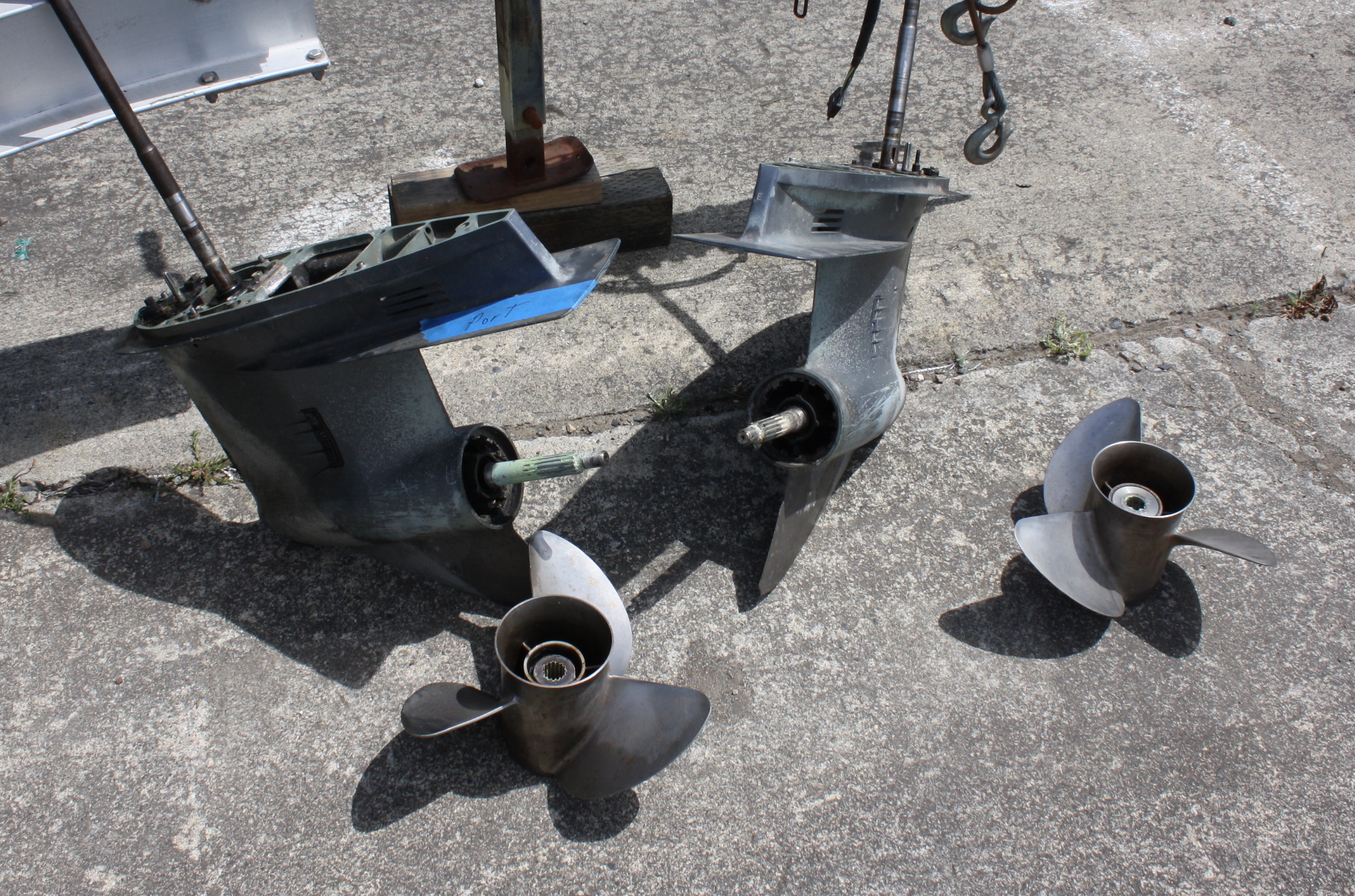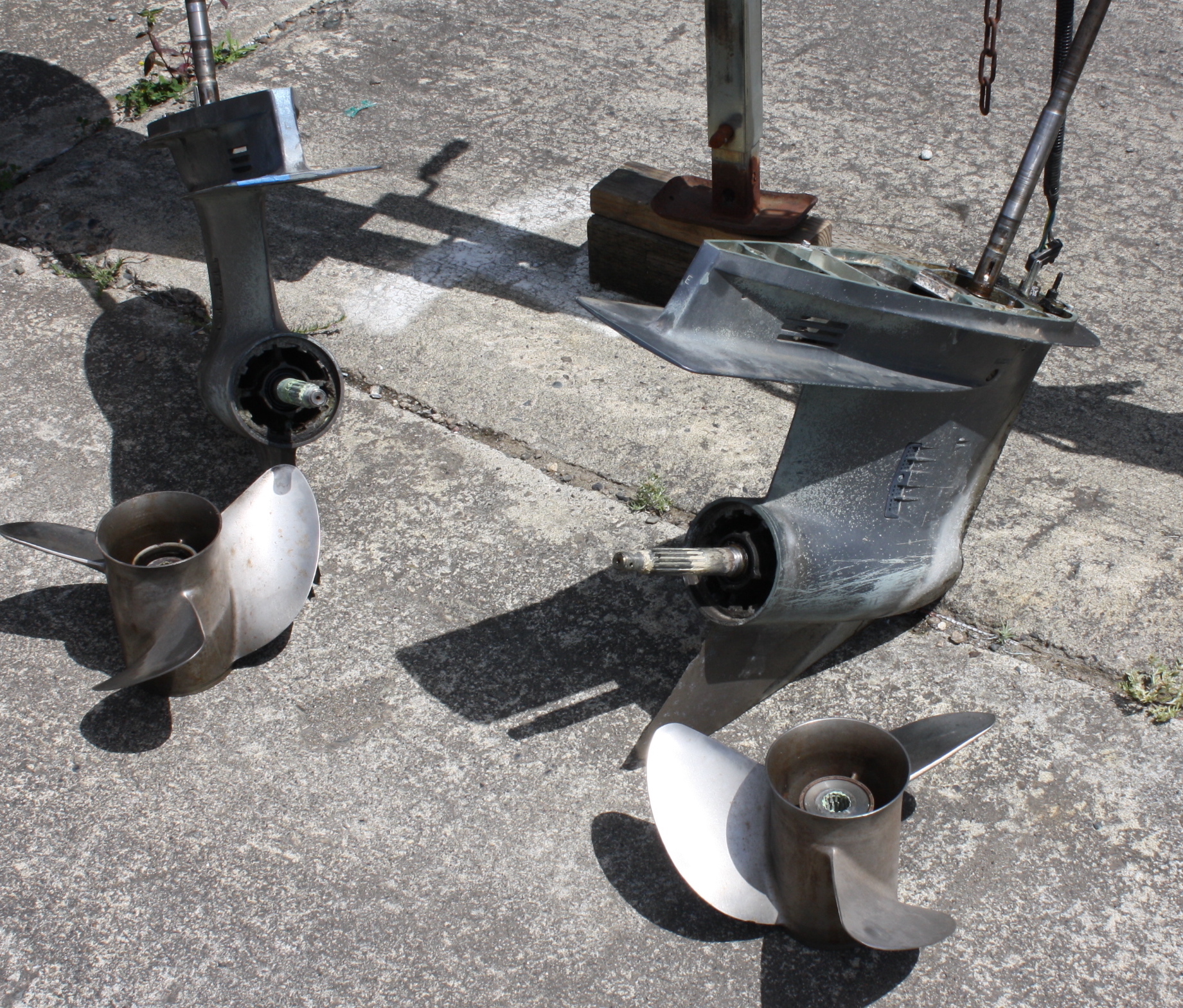 We’re just not going to do that type of repair in our shop, nor pay a pro shop to do it.  We’ve got quite a few other projects underway and do not want to start another right now.  The idea of replacing the outboards is one we also considered.  For us, the difficulty in that decision is that no matter what we might choose for replacements, a new buyer would say “great, but why didn’t you use the California Evinrude 2-stroke, or, why not the New Honda 4’s…??”.