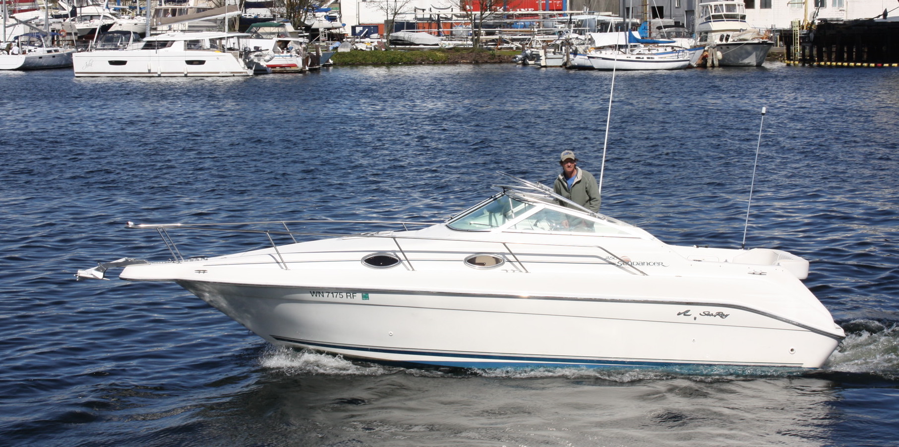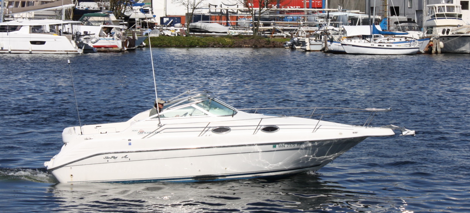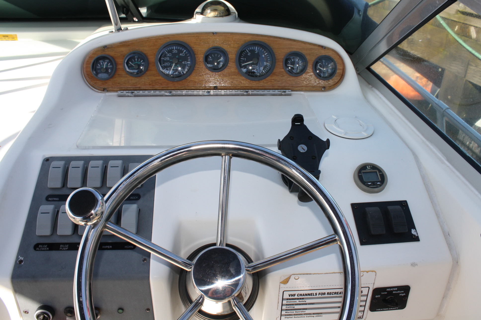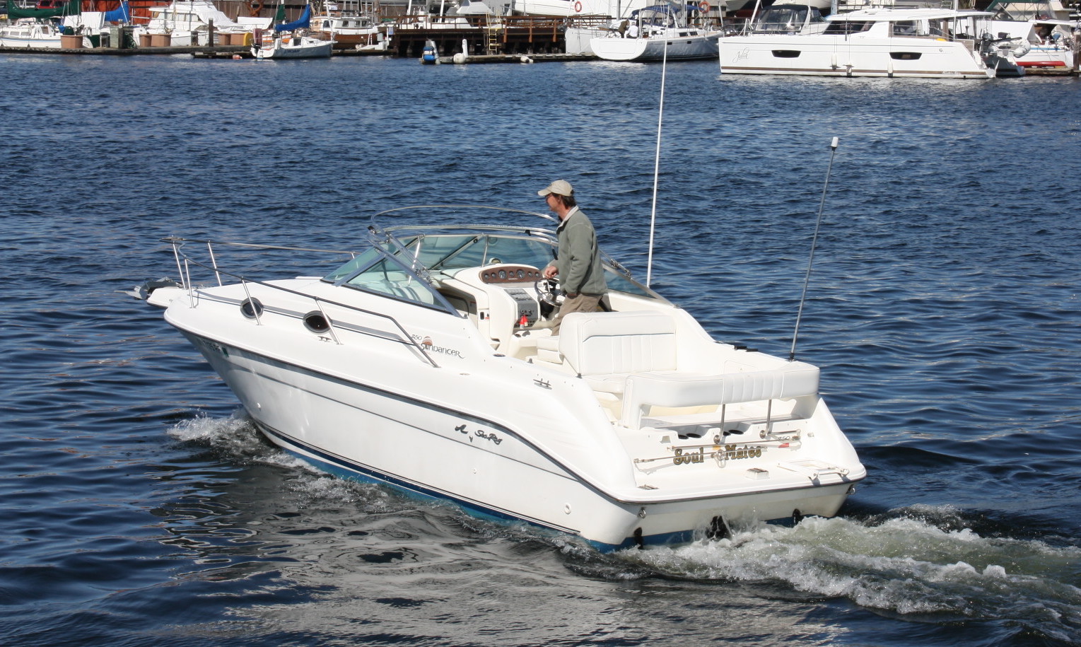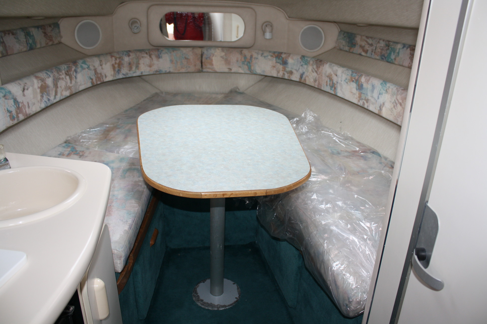 This is just a partial list of what’s been done to get her back into good condition since she arrived at our docks last winter: a thorough cleaning inside and out; bottom sanded, prep and painted, outdrive inspection, tilt rams replaced and prop polished; hull survey; professional mechanical inspection; new VHF radio; new filters and oil change plus compression test with excellent results; carpets and interior cushions professionally cleaned, etc. We’ve even got newly upholstered cushions for the aft cockpit. In other words, we’ve just taken care of all that “repair stuff’ you didn’t have time to do, nor wanted to pay a yard to do for you. Now, you just get the FUN!