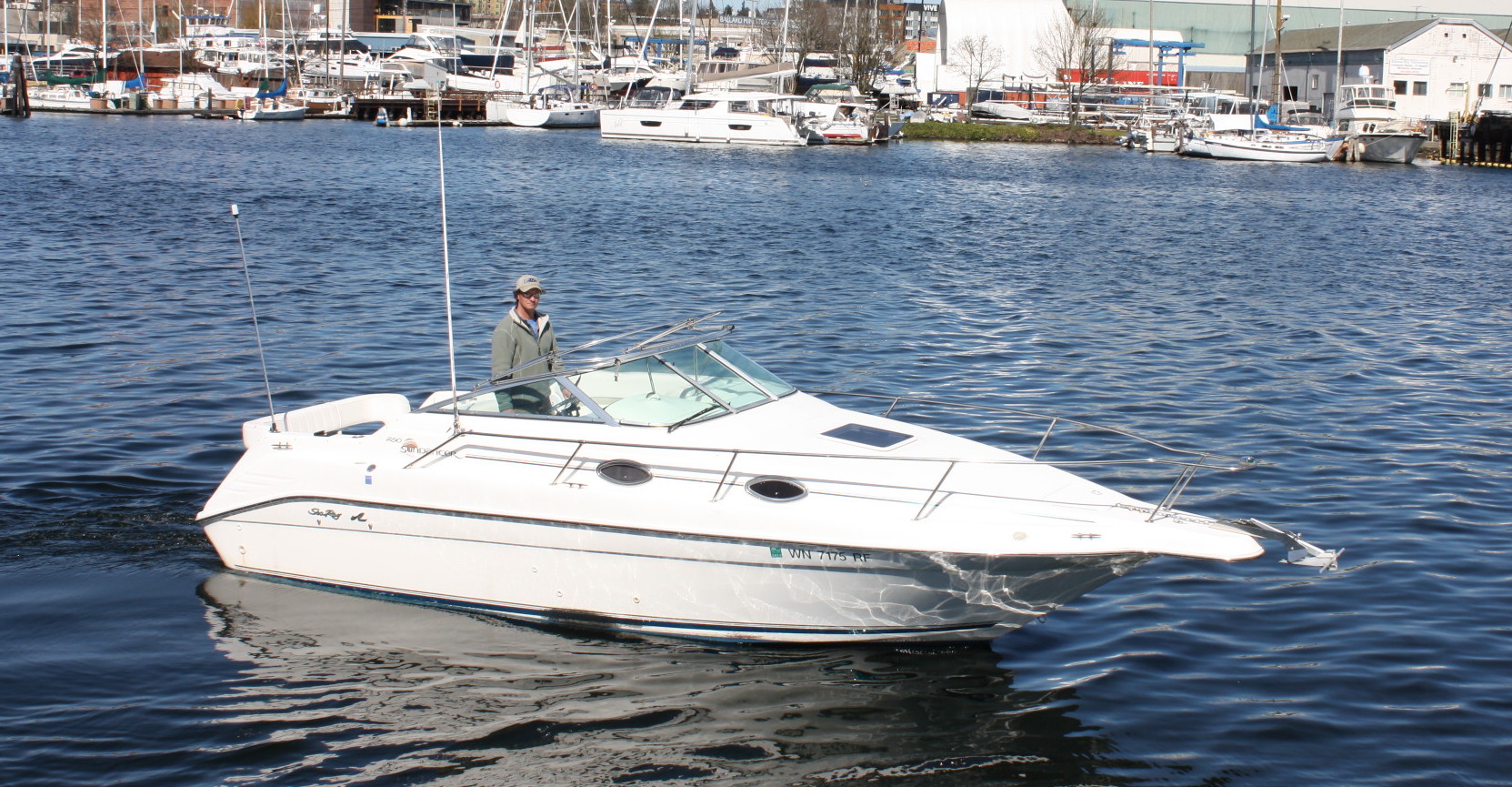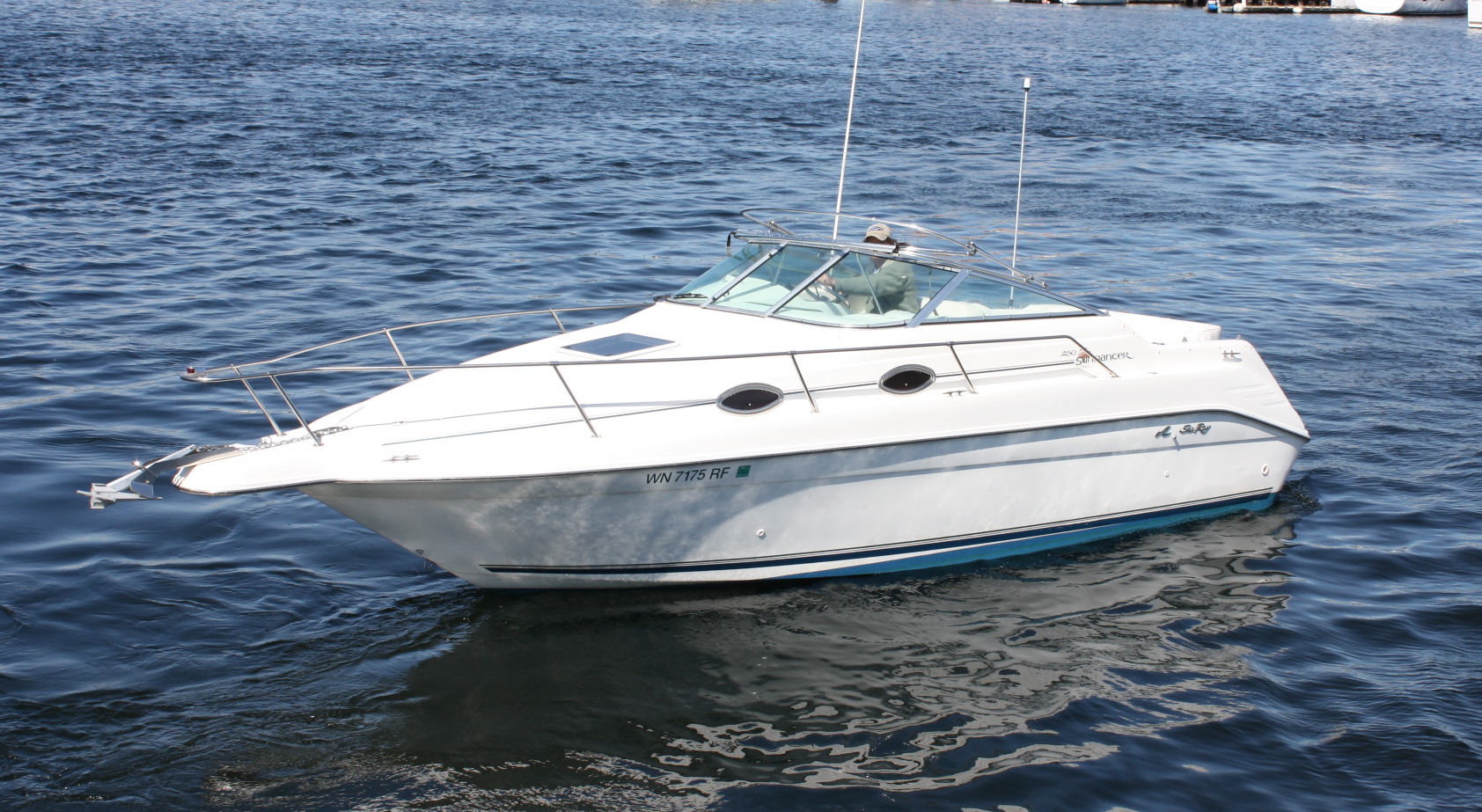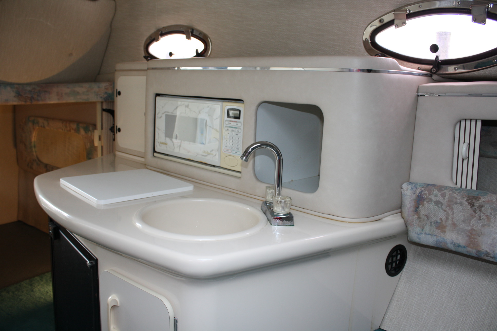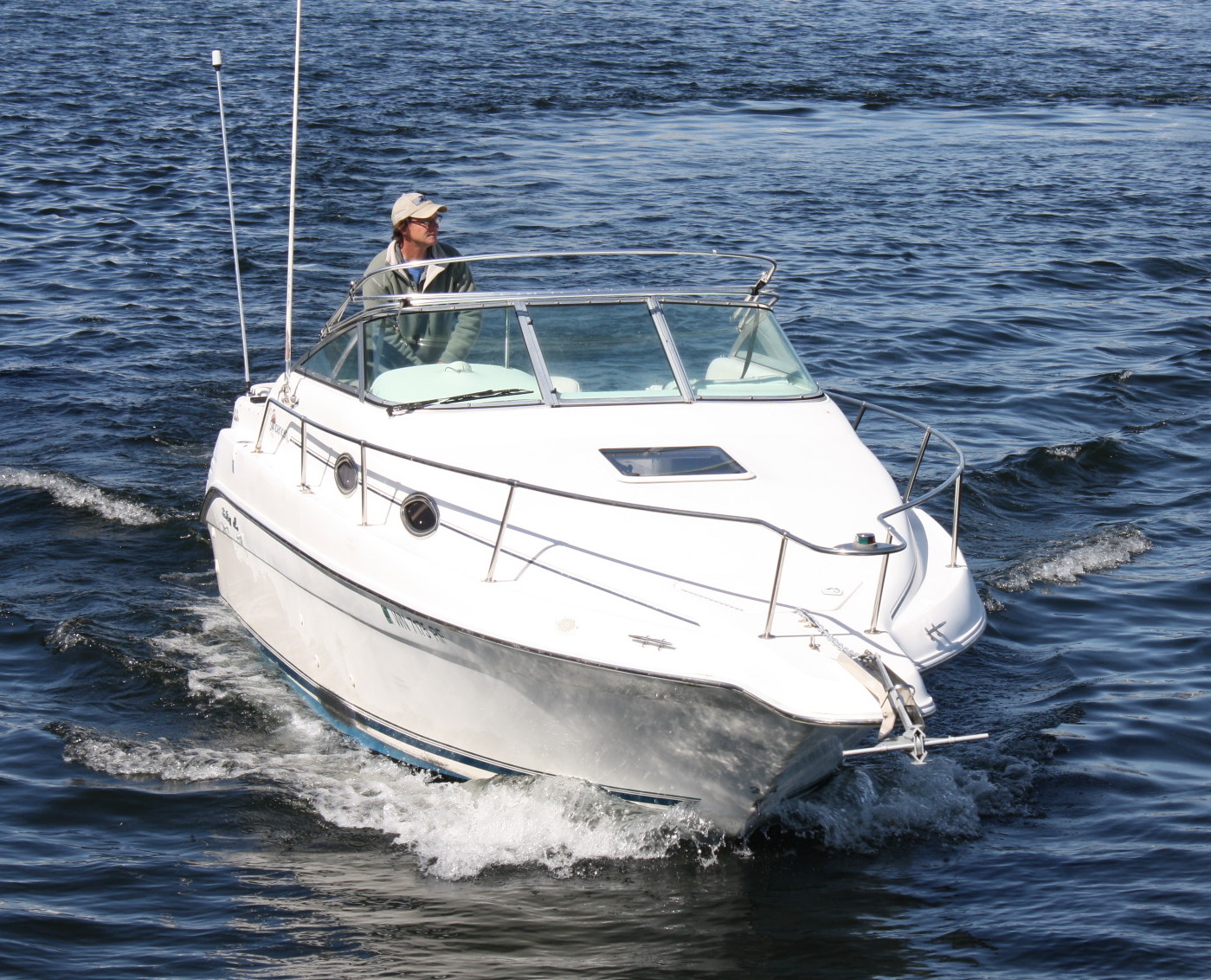 This is just a partial list of what’s been done to get her back into good condition since she arrived at our docks last winter: a thorough cleaning inside and out; bottom sanded, prep and painted, outdrive inspection, tilt rams replaced and prop polished; hull survey; professional mechanical inspection; new VHF radio; new filters and oil change plus compression test with excellent results; carpets and interior cushions professionally cleaned, etc. We’ve even got newly upholstered cushions for the aft cockpit. In other words, we’ve just taken care of all that “repair stuff’ you didn’t have time to do, nor wanted to pay a yard to do for you. Now, you just get the FUN!