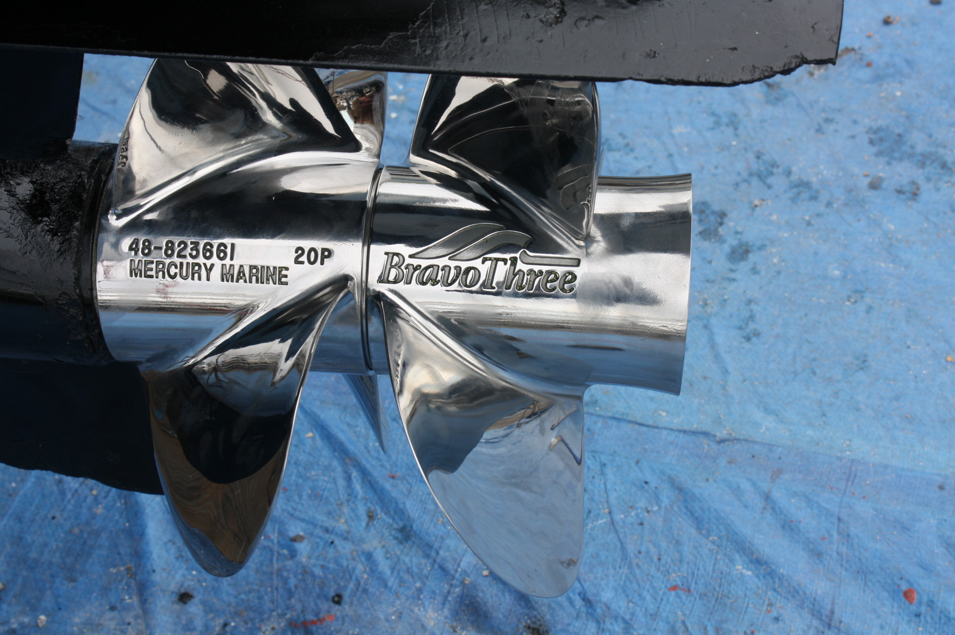 - Bravo III outdrive with stainless duo-prop, inspected and polished in March ’17