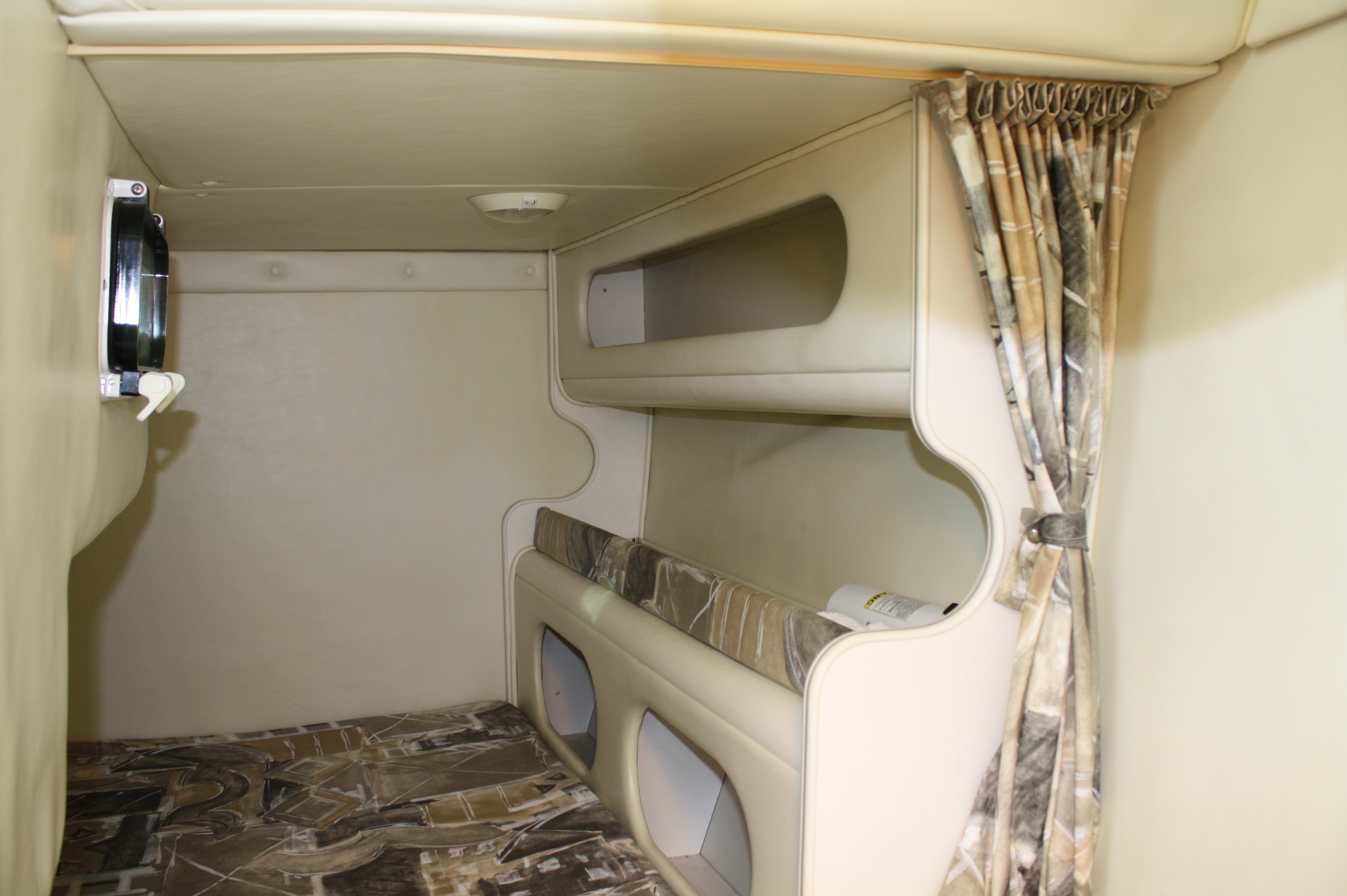 - Mid-cabin double berth with privacy curtain and stowage