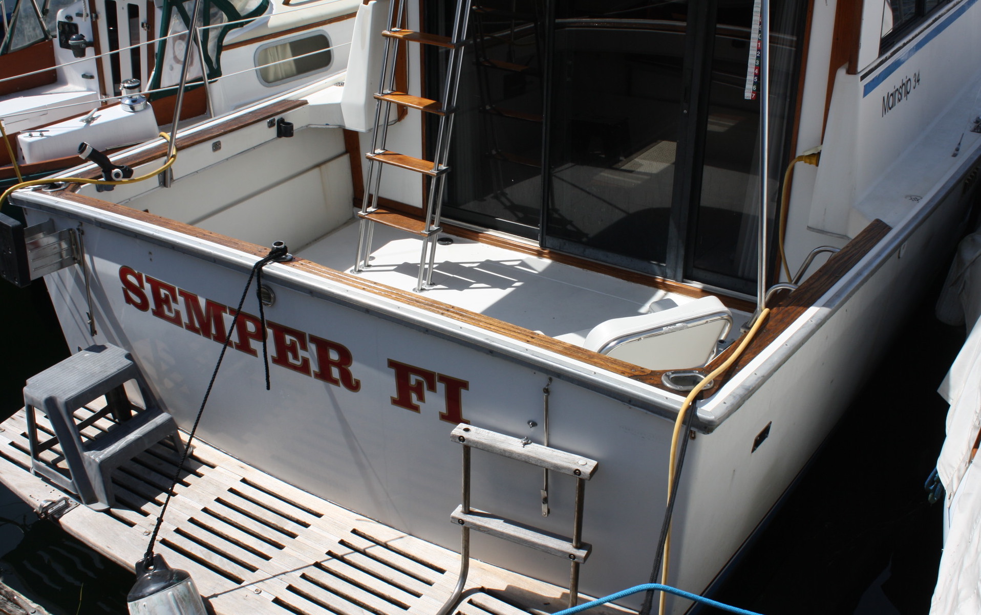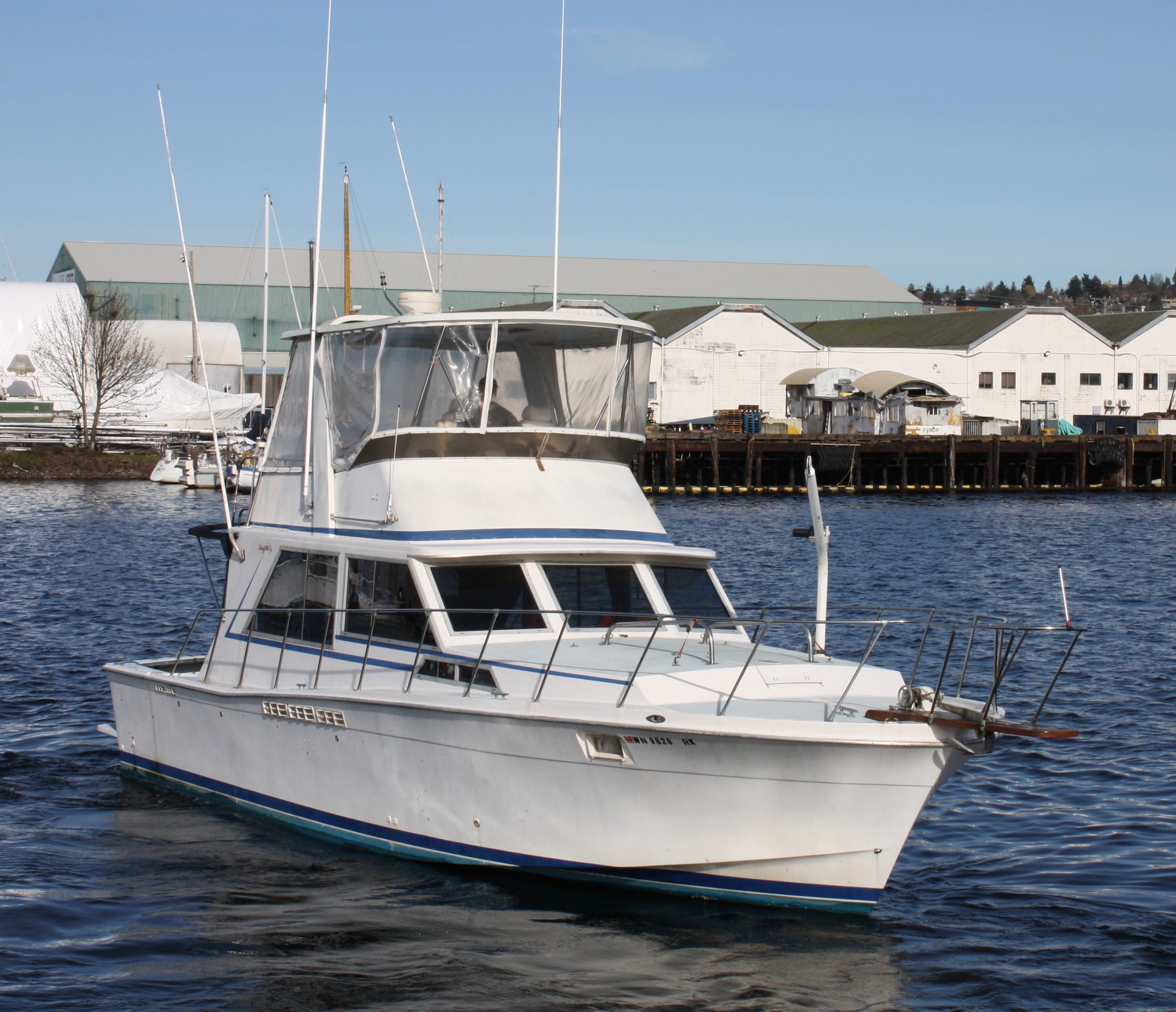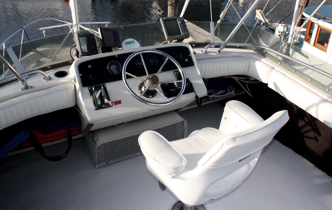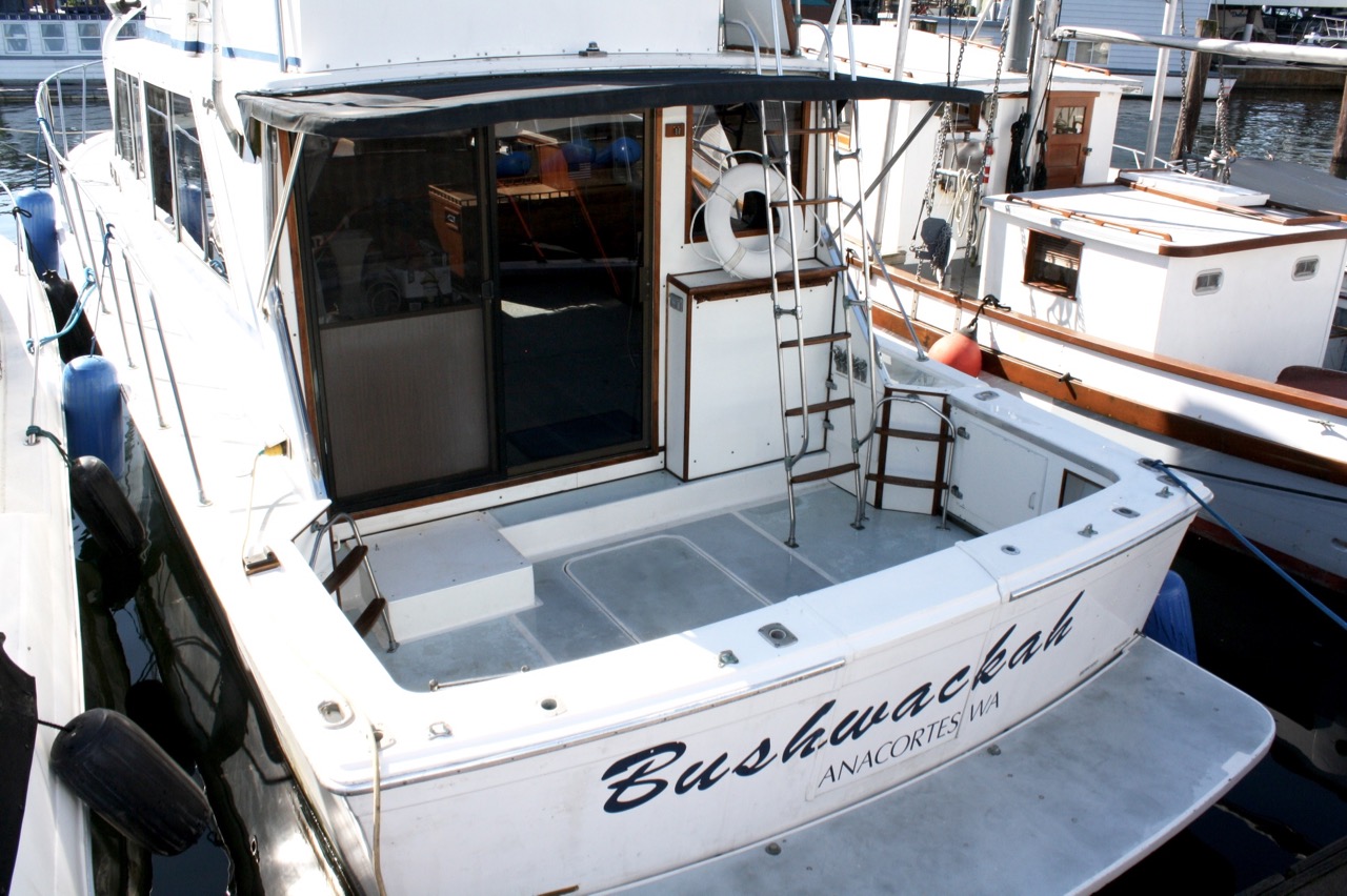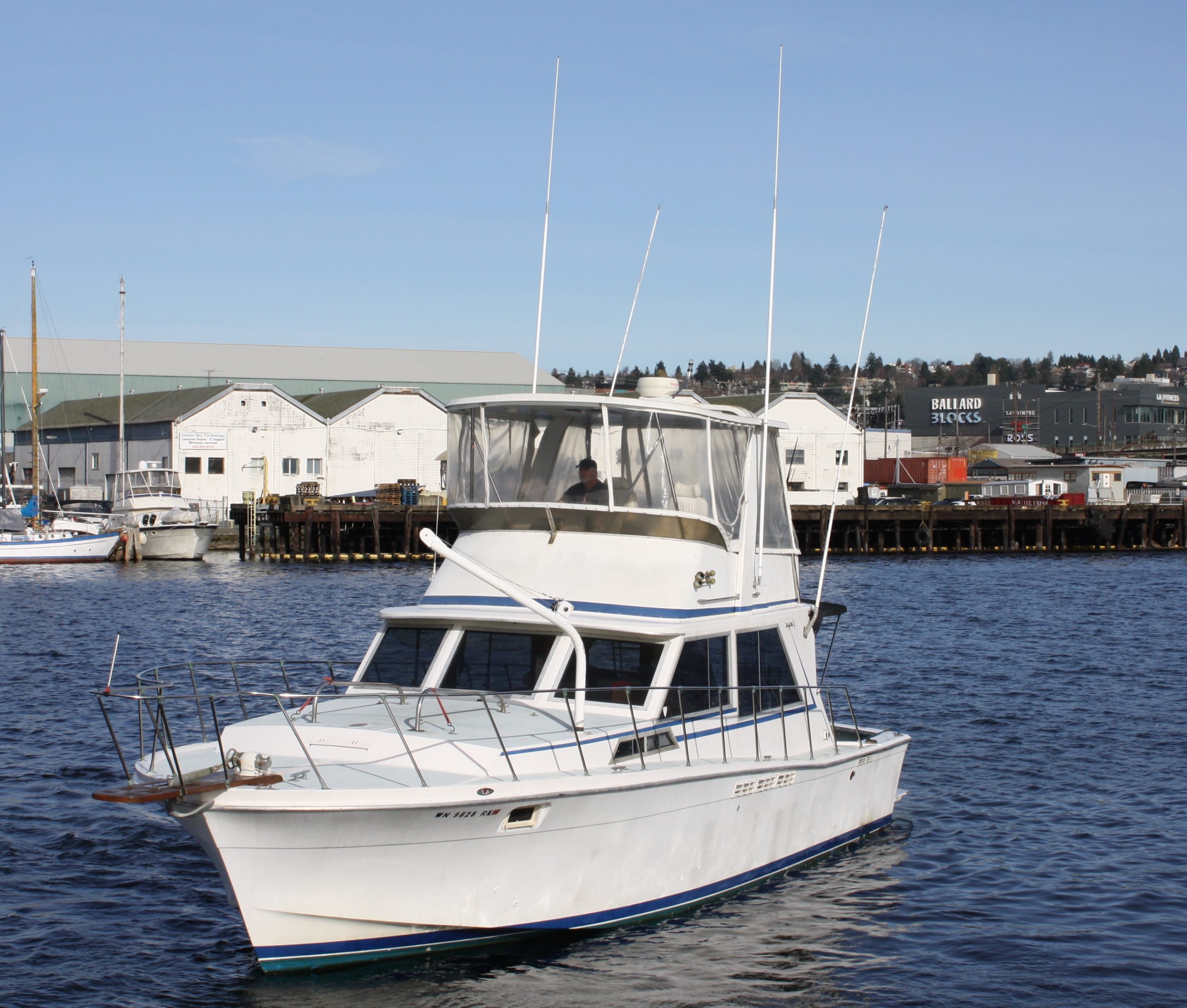 “Semper Fi” has a wide open salon of more than 100 sq. ft., both a full length flybridge and lower helm, large forward vee berth, comfortable galley and head with a separate shower stall. She’s just a terrific boat for a cruising couple looking to explore our great Northwest waters.