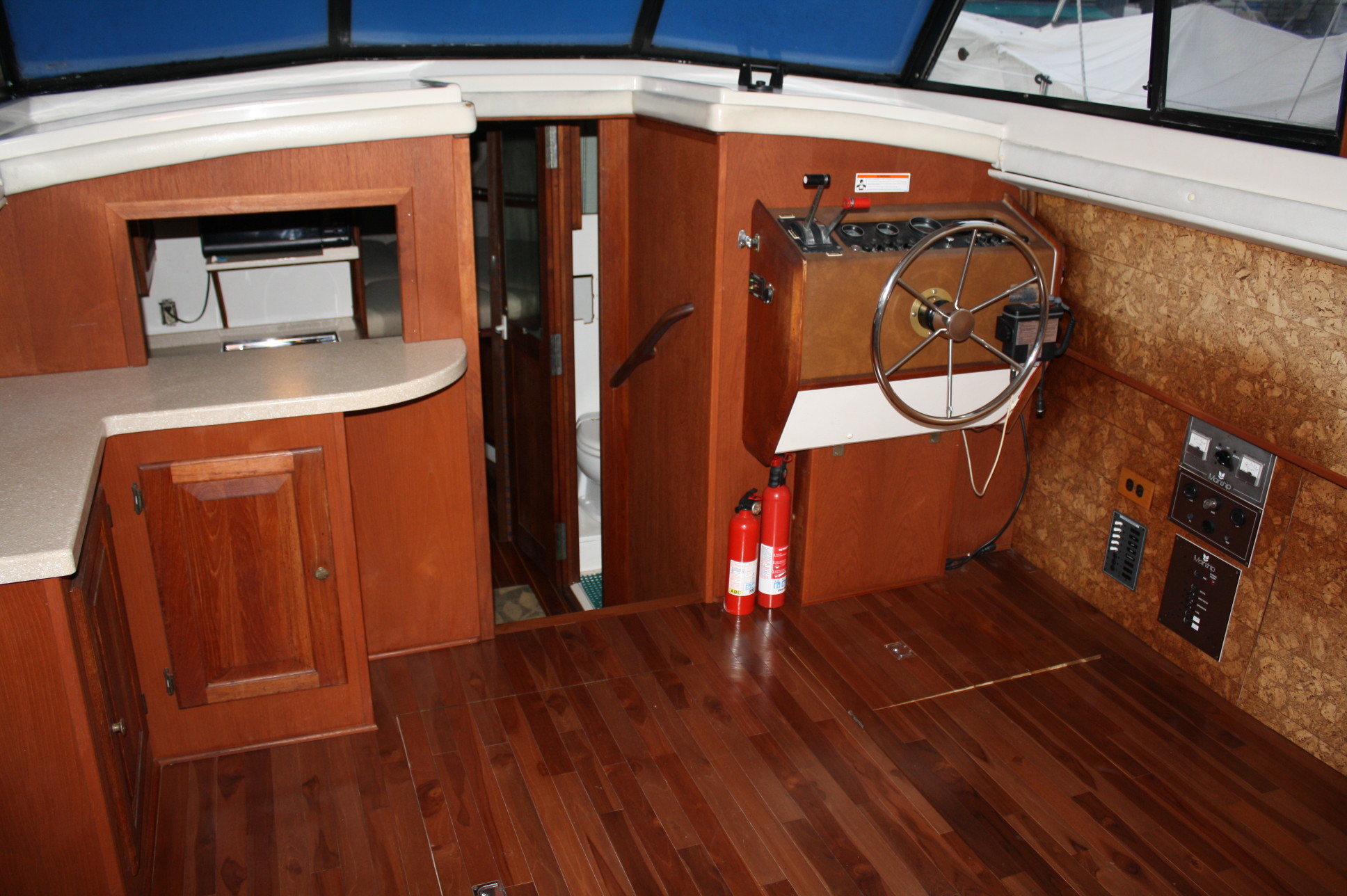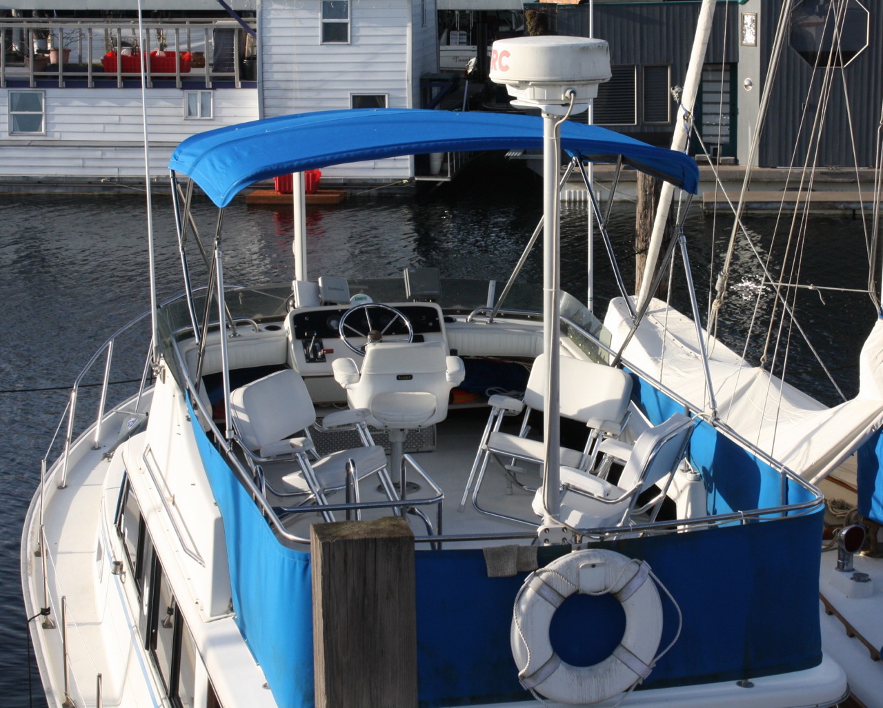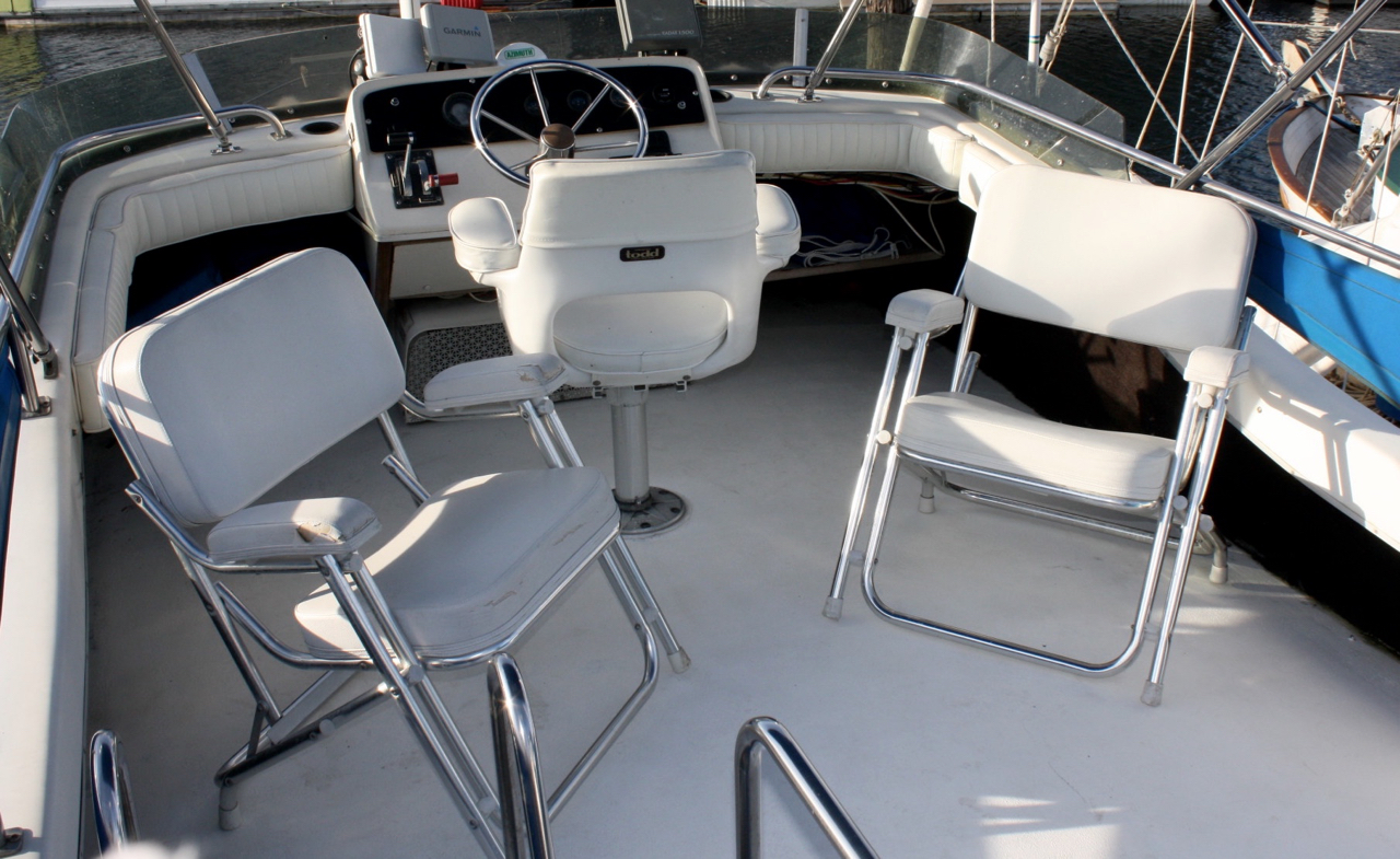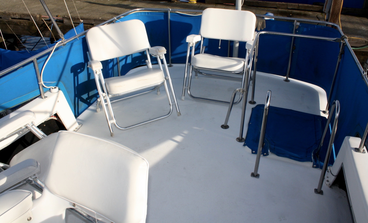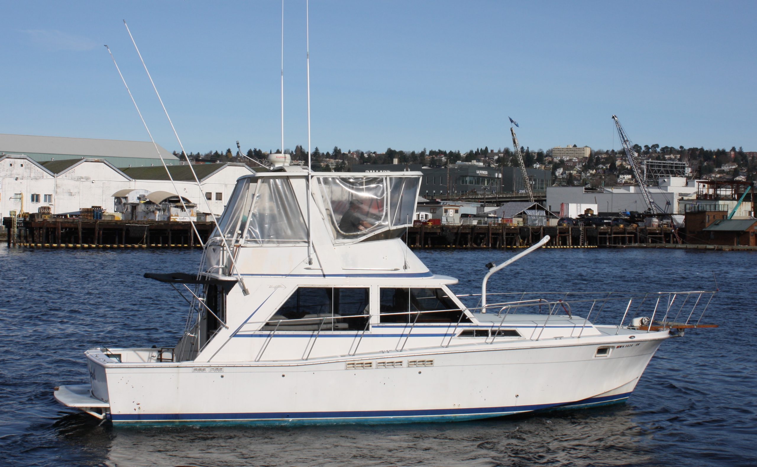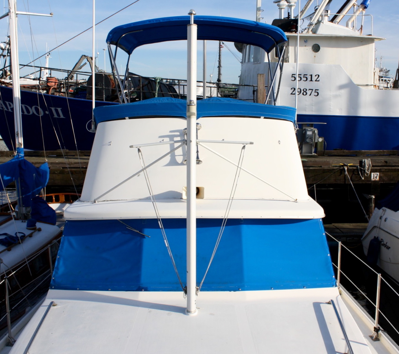 “Semper Fi” has a wide open salon of more than 100 sq. ft., both a full length flybridge and lower helm, large forward vee berth, comfortable galley and head with a separate shower stall. She’s just a terrific boat for a cruising couple looking to explore our great Northwest waters.