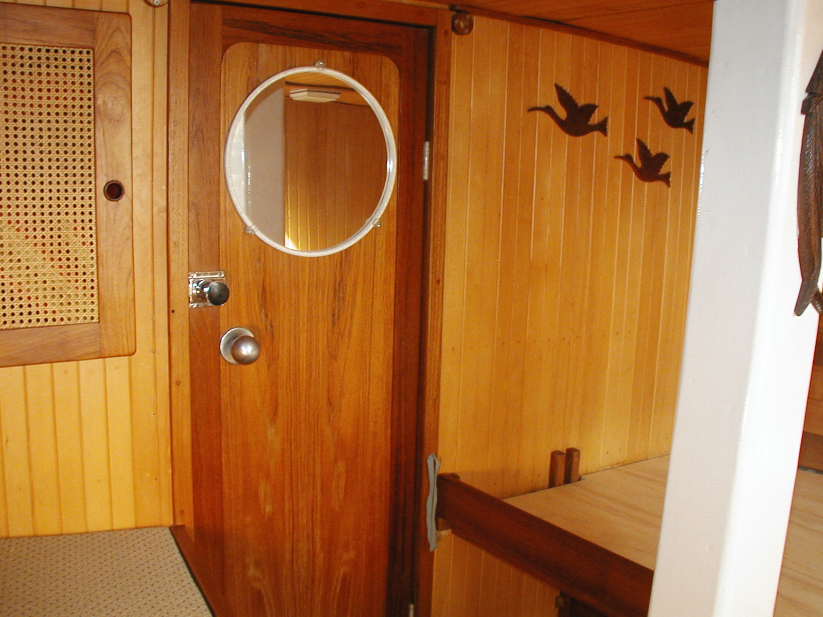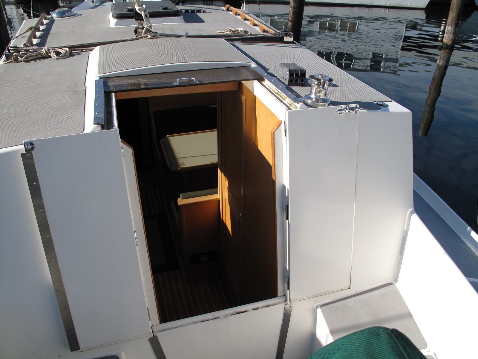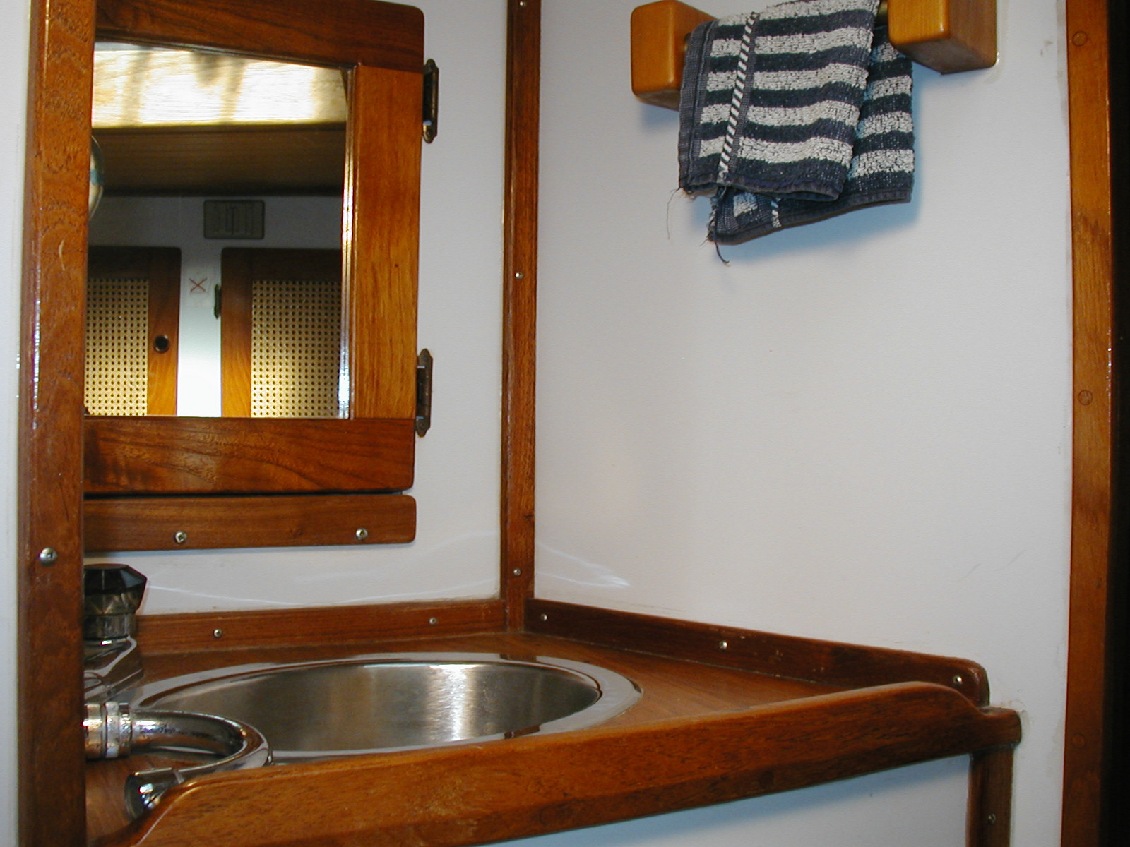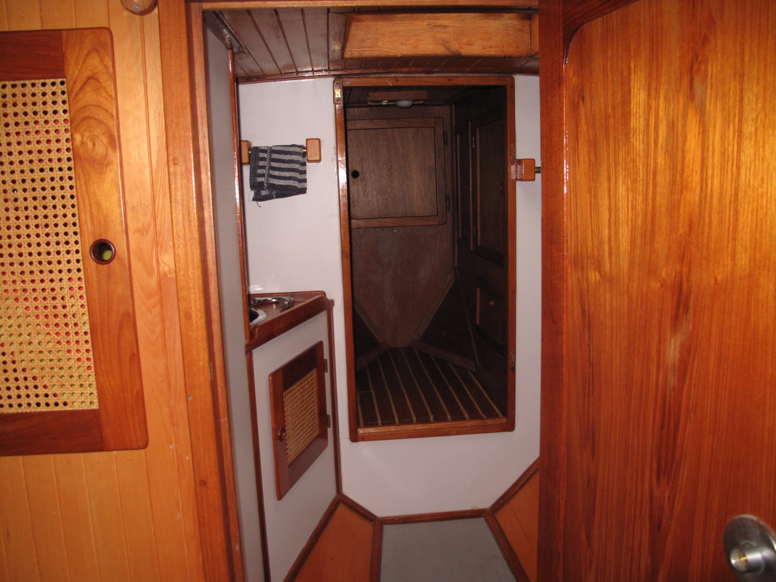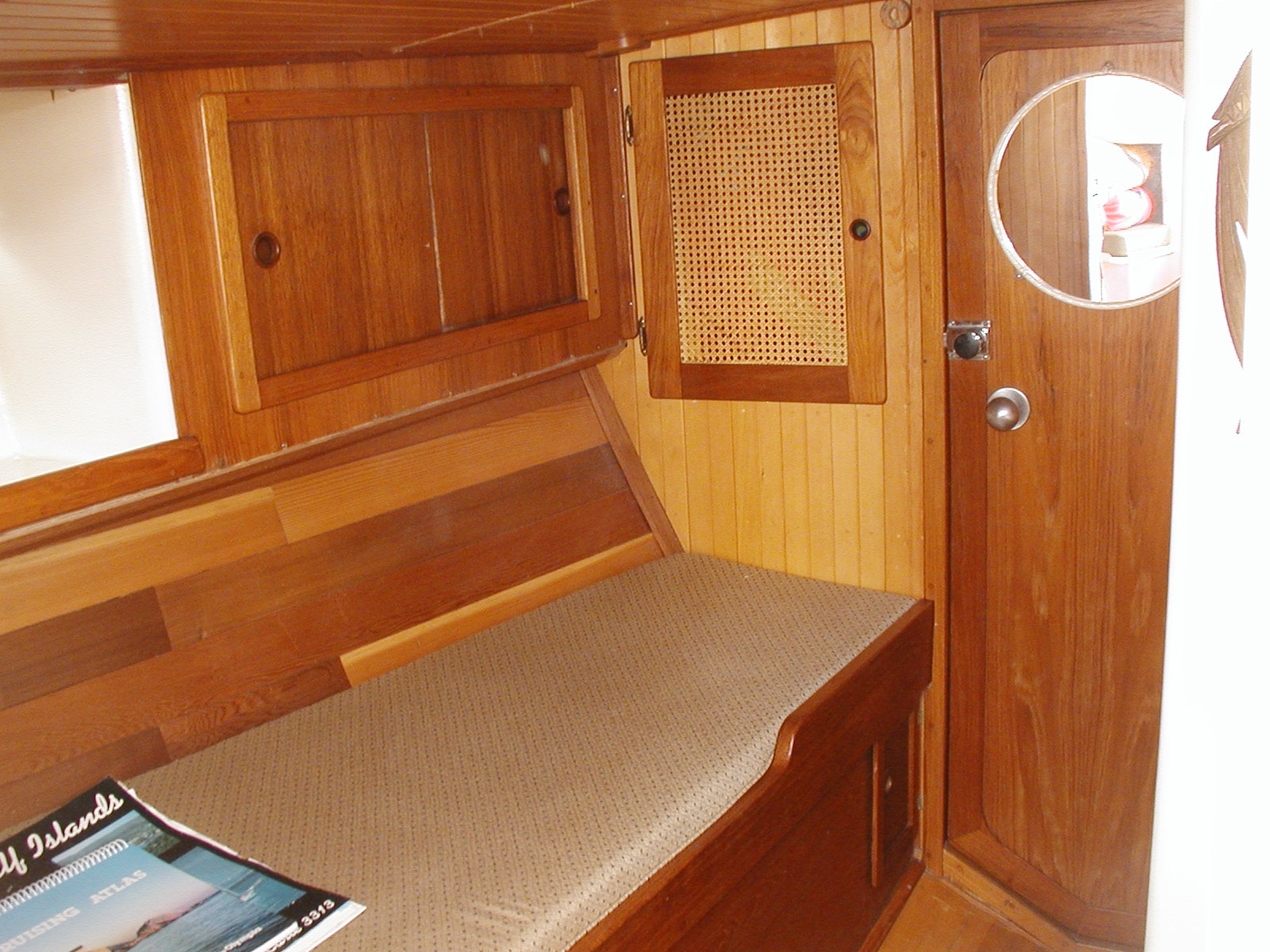 This unusual cutter rigged sloop underwent a complete rebuild between 2009 – 2012.  New fiberglass over wood deck was installed and the house was redesigned and rebuilt with custom aluminum framed heavy weather double windows.  She has all new fresh water and waste plumbing, almost all new rewiring, new lighting, new electric panels, new ‘teak and holly’ sole and a beautifully panelled main salon.