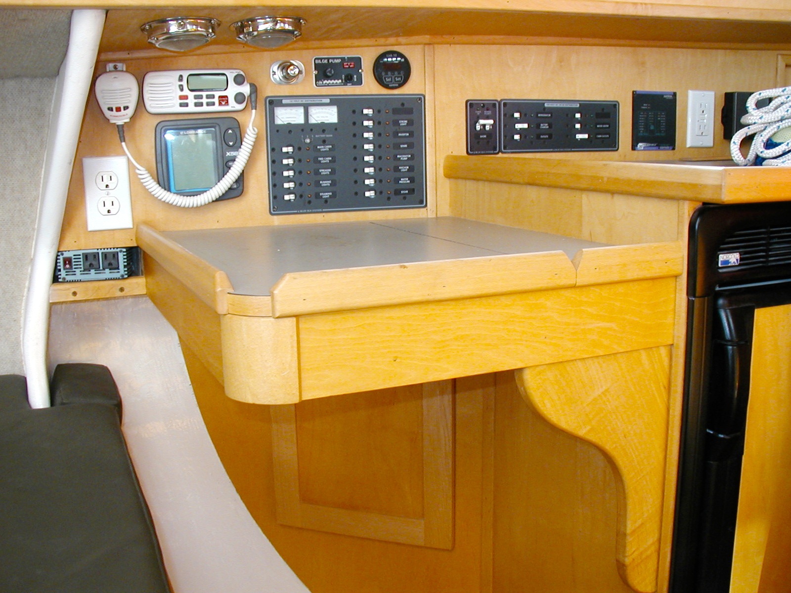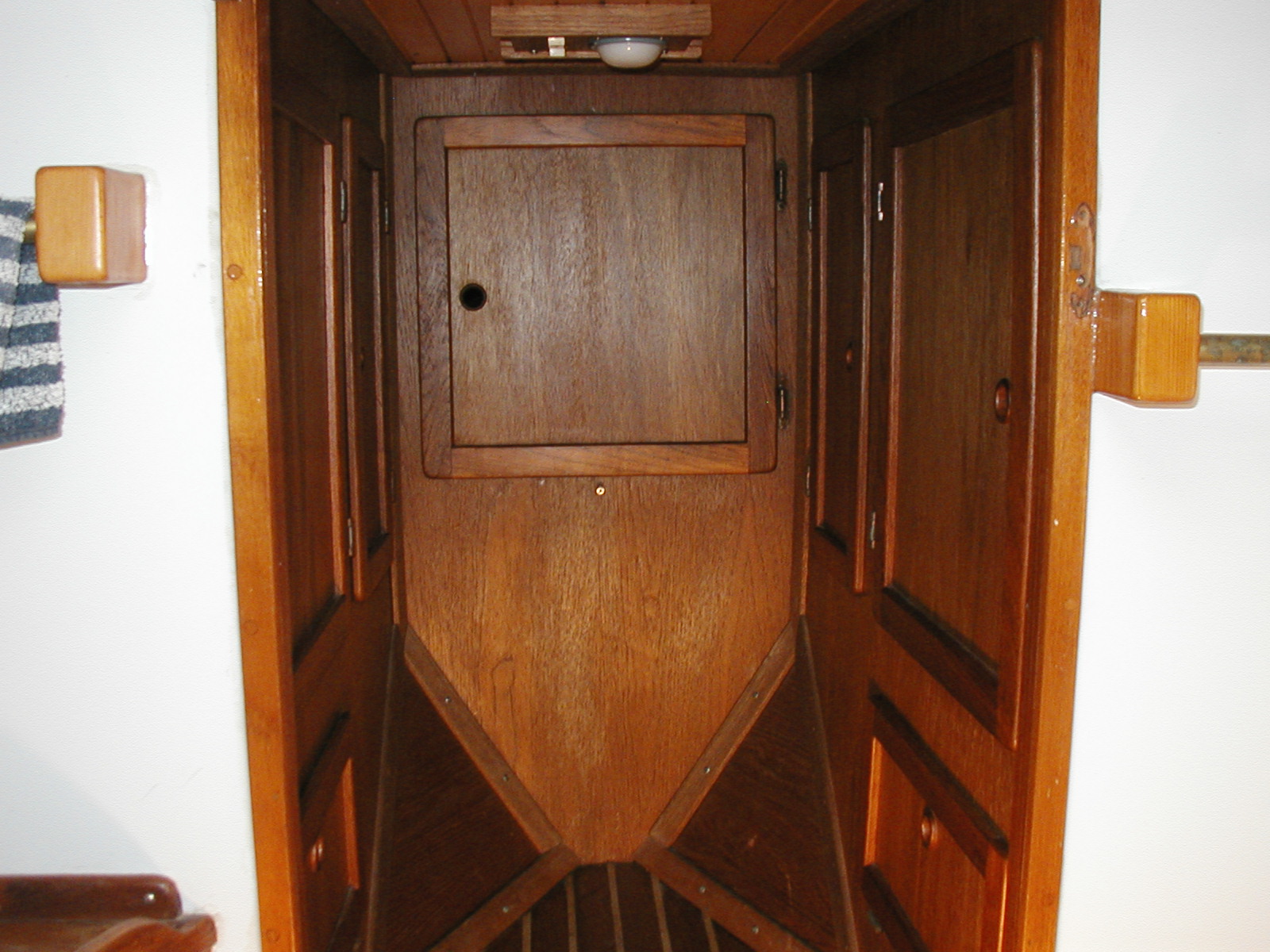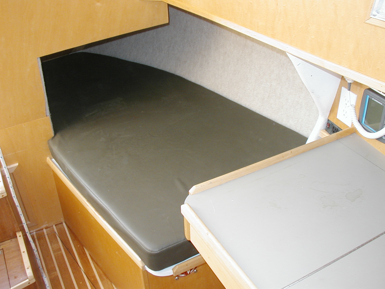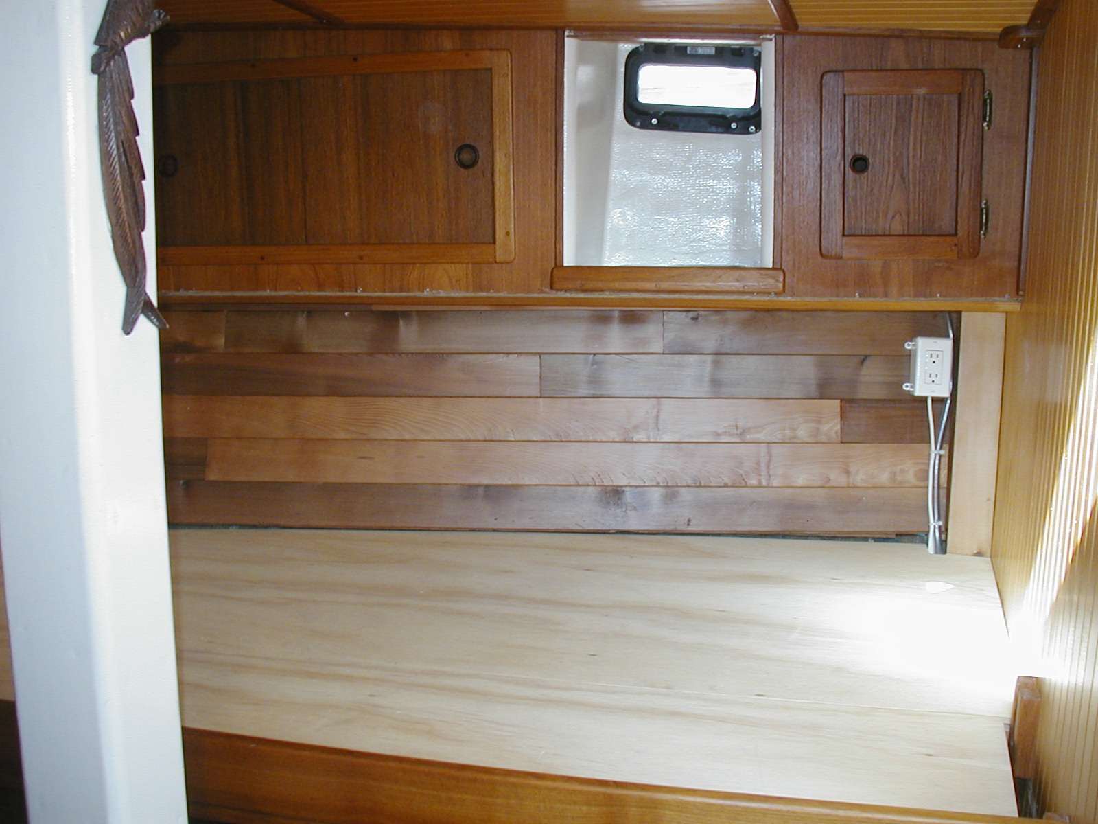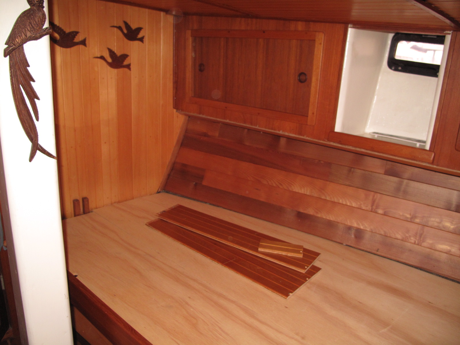 This unusual cutter rigged sloop underwent a complete rebuild between 2009 – 2012.  New fiberglass over wood deck was installed and the house was redesigned and rebuilt with custom aluminum framed heavy weather double windows.  She has all new fresh water and waste plumbing, almost all new rewiring, new lighting, new electric panels, new ‘teak and holly’ sole and a beautifully panelled main salon.
