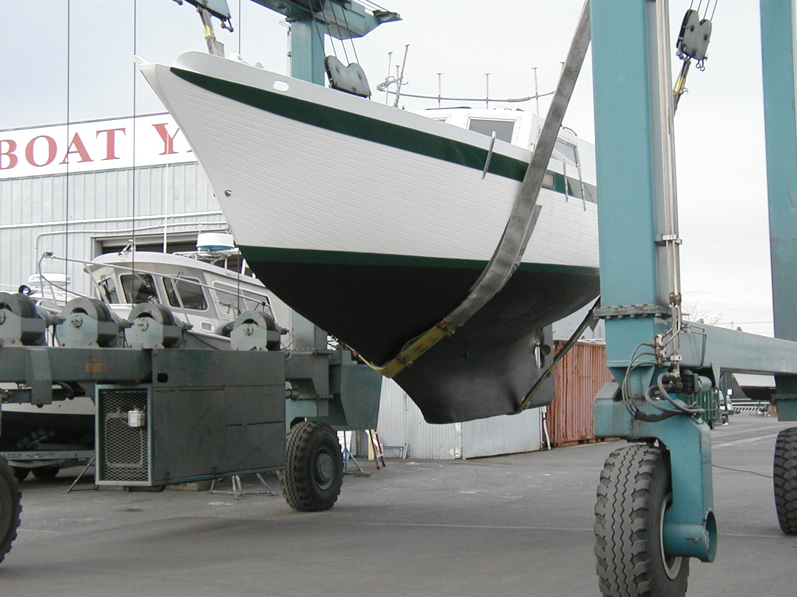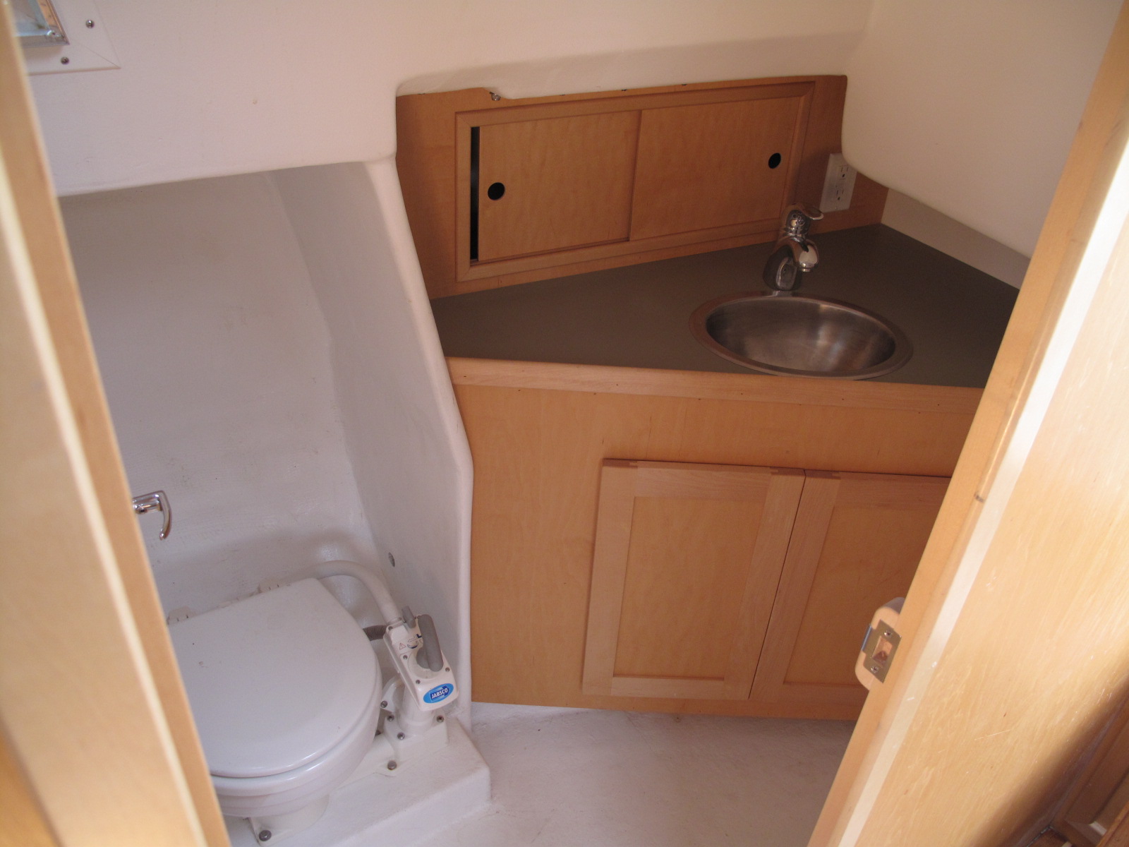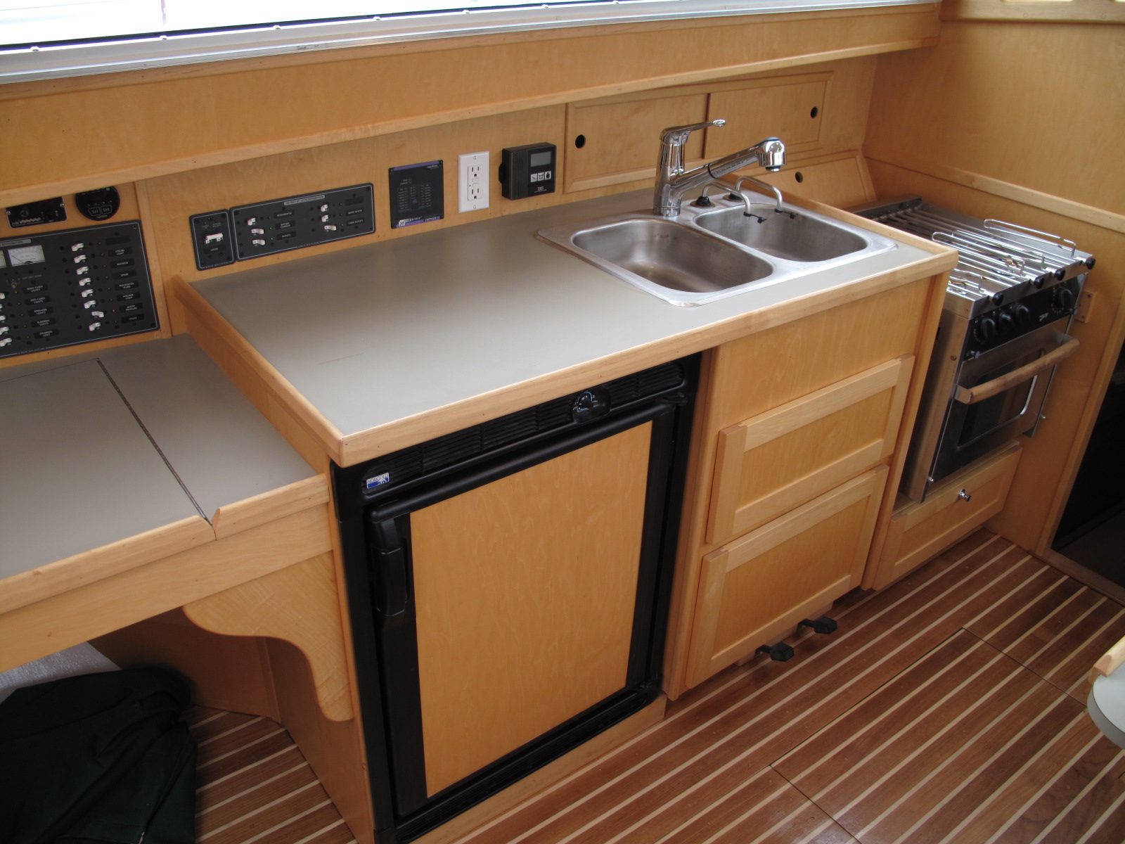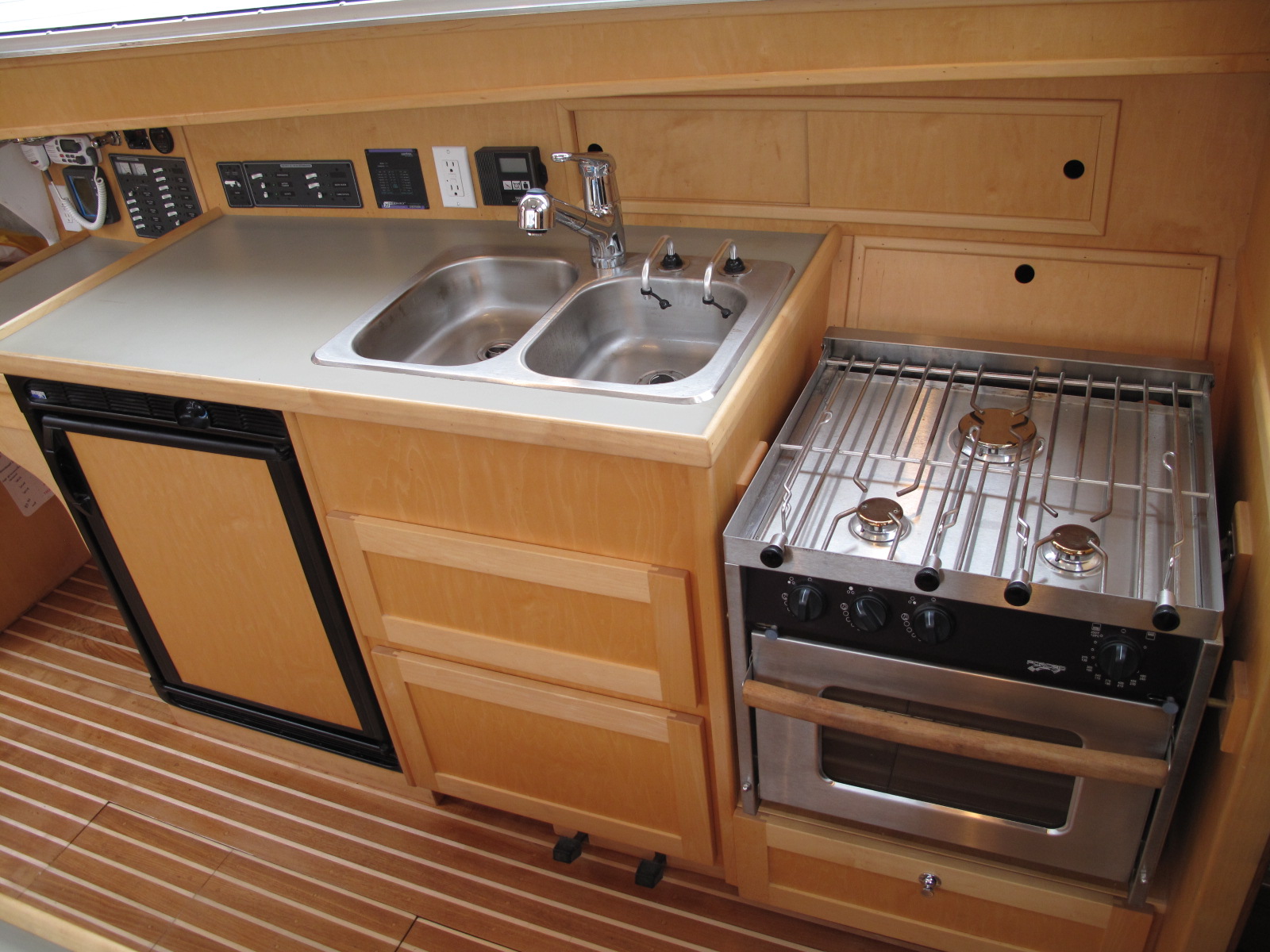 Both the galley and aft head have all new counters, stove, refrigerator, sinks, faucets and custom cabinets.  New running rigging, a new set of sails that have never flown, roller furling, etc., etc.  Basically, she’s been dismantled and rebuilt from the inside out – as can be seen in the new paint applied on the inner hull and bilge areas….and in the forty photos below.