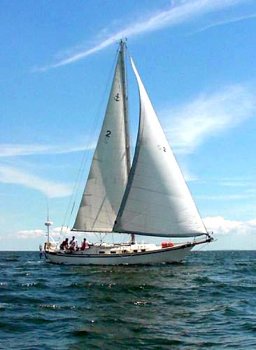 “Her tall rig and 7.4 knot hull speed give Navstar excellent cruising performance, either along the coast or offshore. With her buoyant stern and significant freeboard, heavy weather sailing aboard Navstar is safe and enjoyable. Her Autohelm and Aries wind vane provide for easy short-handed sailing.