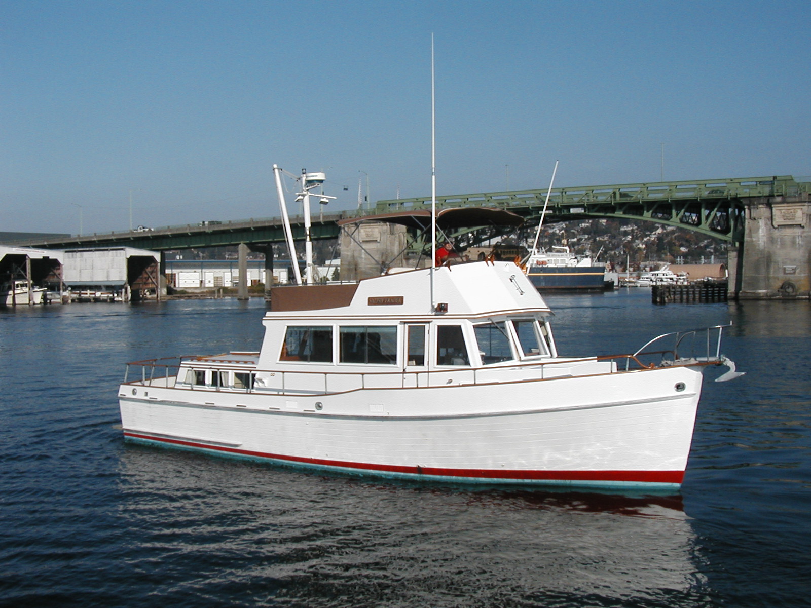 This “Salish Trader” is in excellent condition. She was very well maintained by her former owner over twenty years and spent all of those years under cover in cold, fresh water. She has only 1,650 hours on her twin Lehmans and also has an Onan 7.5kw genset.